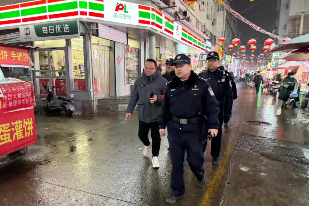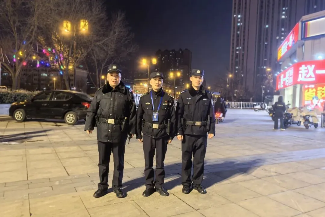 这份坚守,有警民同心的双向温暖。除夕夜零点钟声敲响,辞旧迎新的团圆时刻,小店分局中环派出所民辅警穿梭在辖区大街小巷开展不间断巡防。正在平阳路执勤的民警姚爽奇、辅警高博、李雨桐,意外收到了热心大爷送上的新年问候,一句“新年快乐,你们辛苦了”,在寒冬夜里暖透了执勤民辅警的心。一句朴实的祝福,是群众最真挚的认可,更是基层民警坚守岗位最温暖的动力。