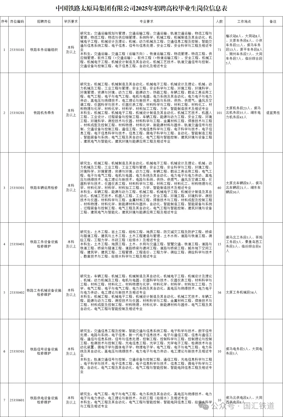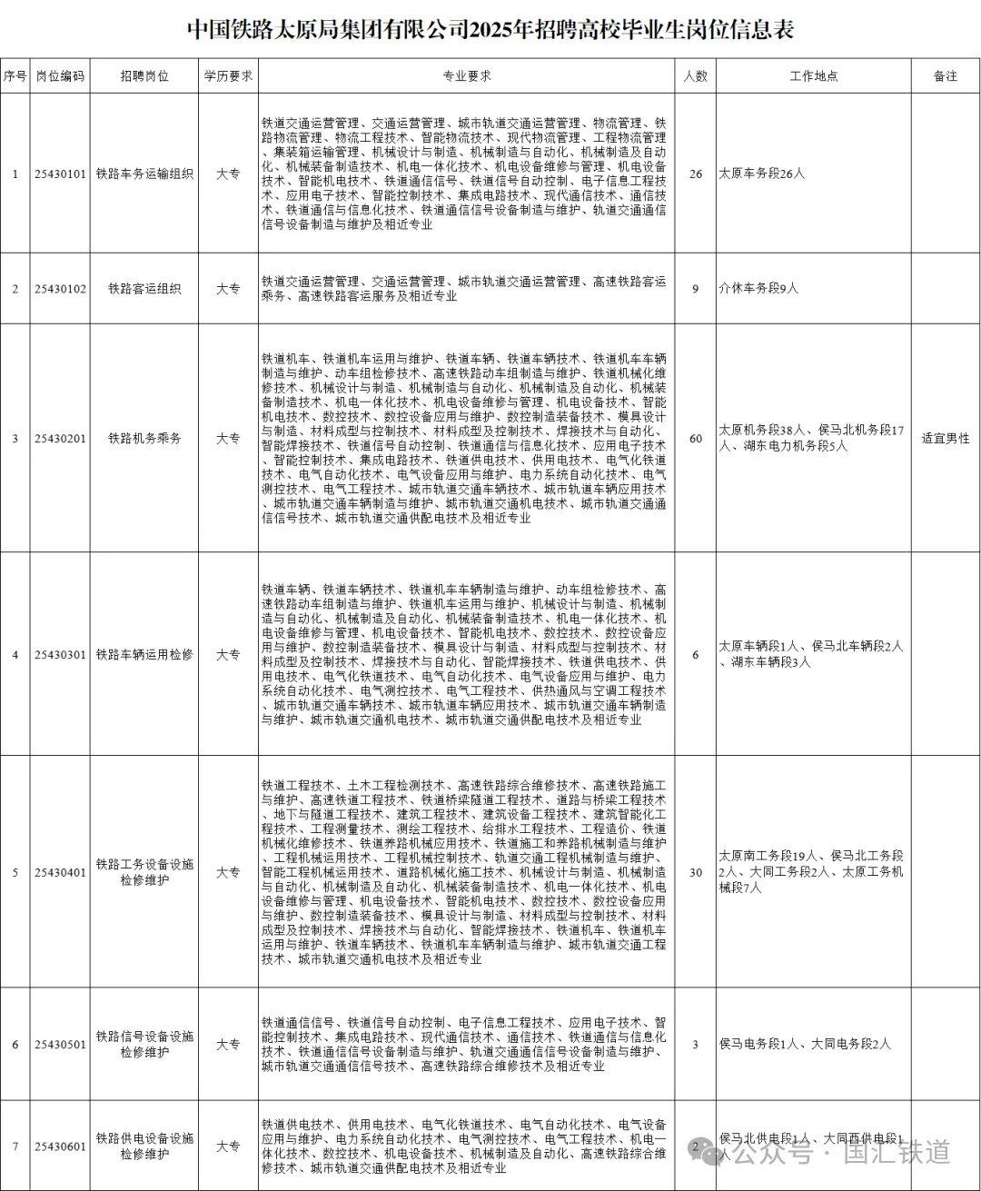 中国铁路太原局集团2025年招聘公告(专科136人)