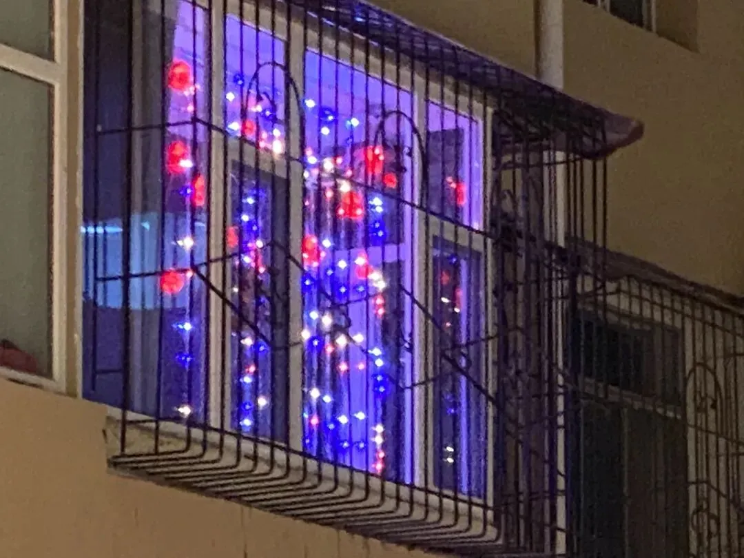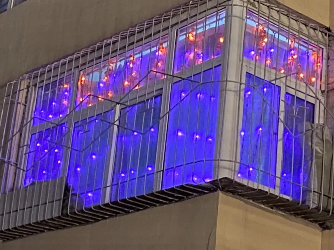一进腊月,天黑下来你往街上走一走,整栋整栋的居民楼,阳台全都亮起来了。各种彩灯、灯笼、流水灯、转灯……这不是商业街的景观,是老百姓自己家,一户一户用阳台彩灯装点出来的。