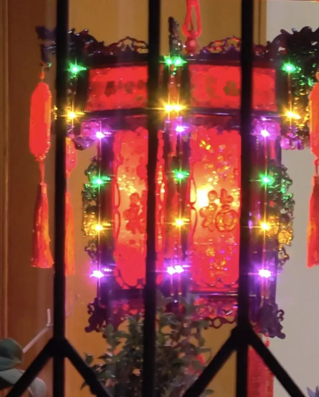 小时候过年,我总喜欢把屋里灯关掉,只留阳台那串彩灯。光柔柔地透进来,一闪一闪,什么不安、什么害怕,全都被赶跑了。