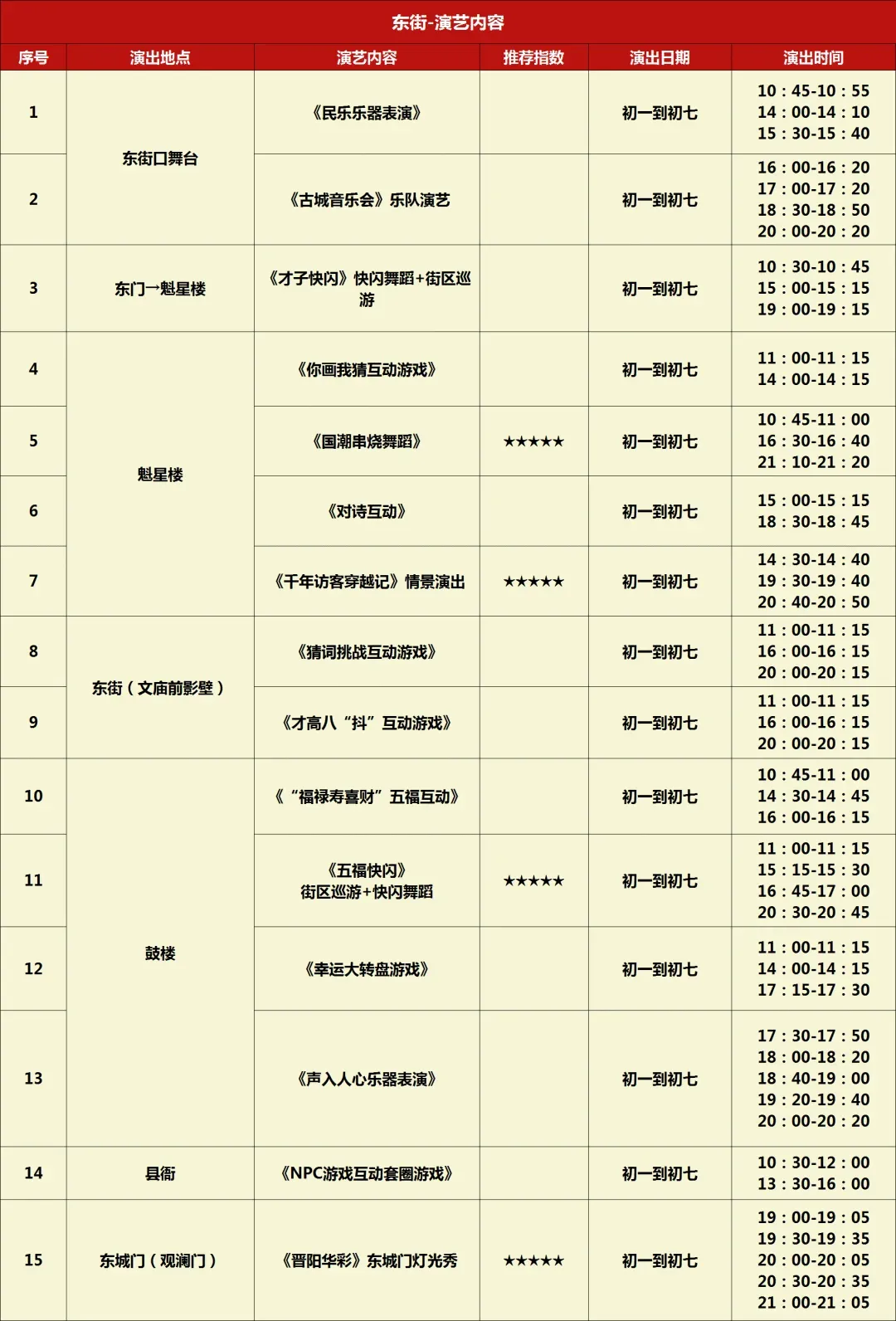 📍东街:“福禄寿喜财”五福NPC互动、魁星楼对诗