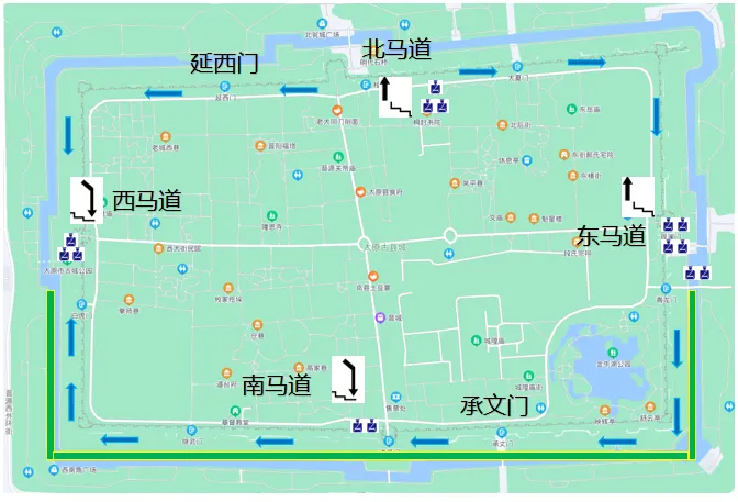 为保障游客有序通行、维护景区游览秩序,现将太原古县城各城门出入,上下城墙规则及通行指引说明如下: