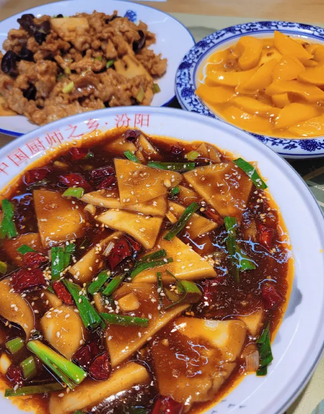 山西人吃面,也讲究筋。汾阳人偏爱“揪片子”,不软不硬,口感正好。