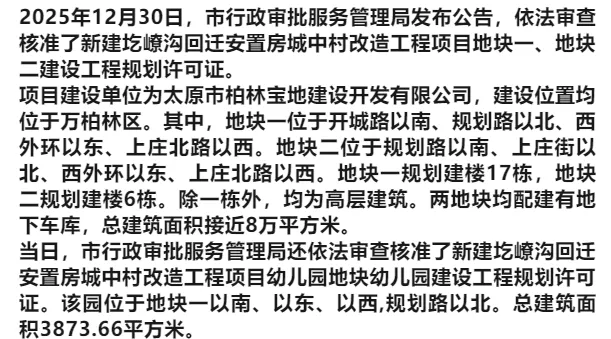 >太原这一回迁房规划证获批!