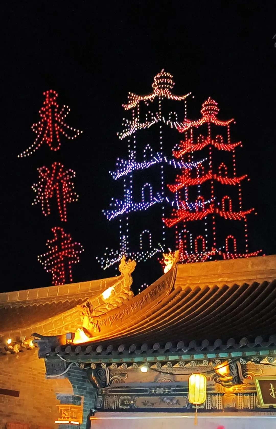 古县城素有“凤凰城”之誉,承晋阳千年文脉,明洪武规制犹在。入门南门,先遇黑悟空数字光影,焰光腾跃,火舞凌空,古今碰撞,恍入幻境。正所谓“遗踪重焕凤城色,新影长燃晋土春”,千年城池以新潮姿态,迎八方来客。
