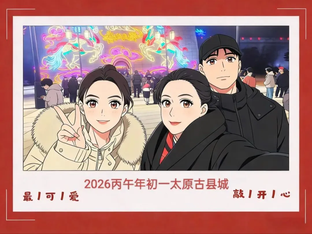 岁在丙午,正月元朔,一家三口同游太原古县城。风拂凤城,灯映古巷,摩肩接踵皆是欢颜,一街烟火尽是年光。久未如此酣畅尽兴,归来余韵绕梁,晨起犹哼《大花轿》,遂记此人间至味。
