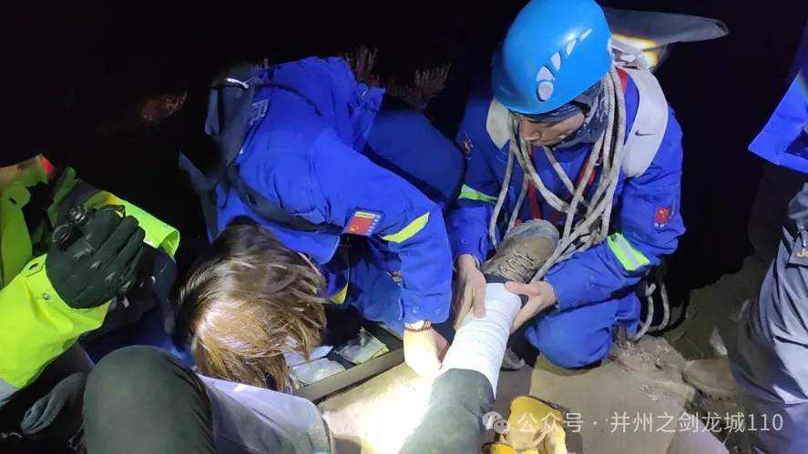 危急时刻,公安、消防、120急救及山西蓝天救援队迅速联动,展开了一场连夜紧急救援。
