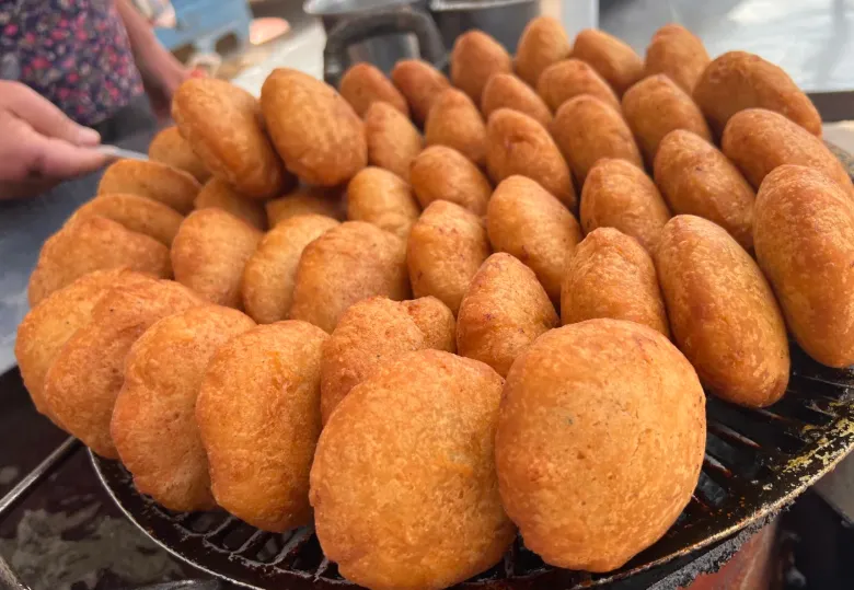【平陆油糕】这东西看着简单,做起来考手艺。烫好的面团,包上红糖或枣泥馅儿,下油锅炸。火候得准,炸出来得是金黄色,表皮起了细密的小泡。咬一口,外皮"咔嚓"一声碎了,里面的糖汁儿顺着嘴角流,烫嘴也舍不得吐。