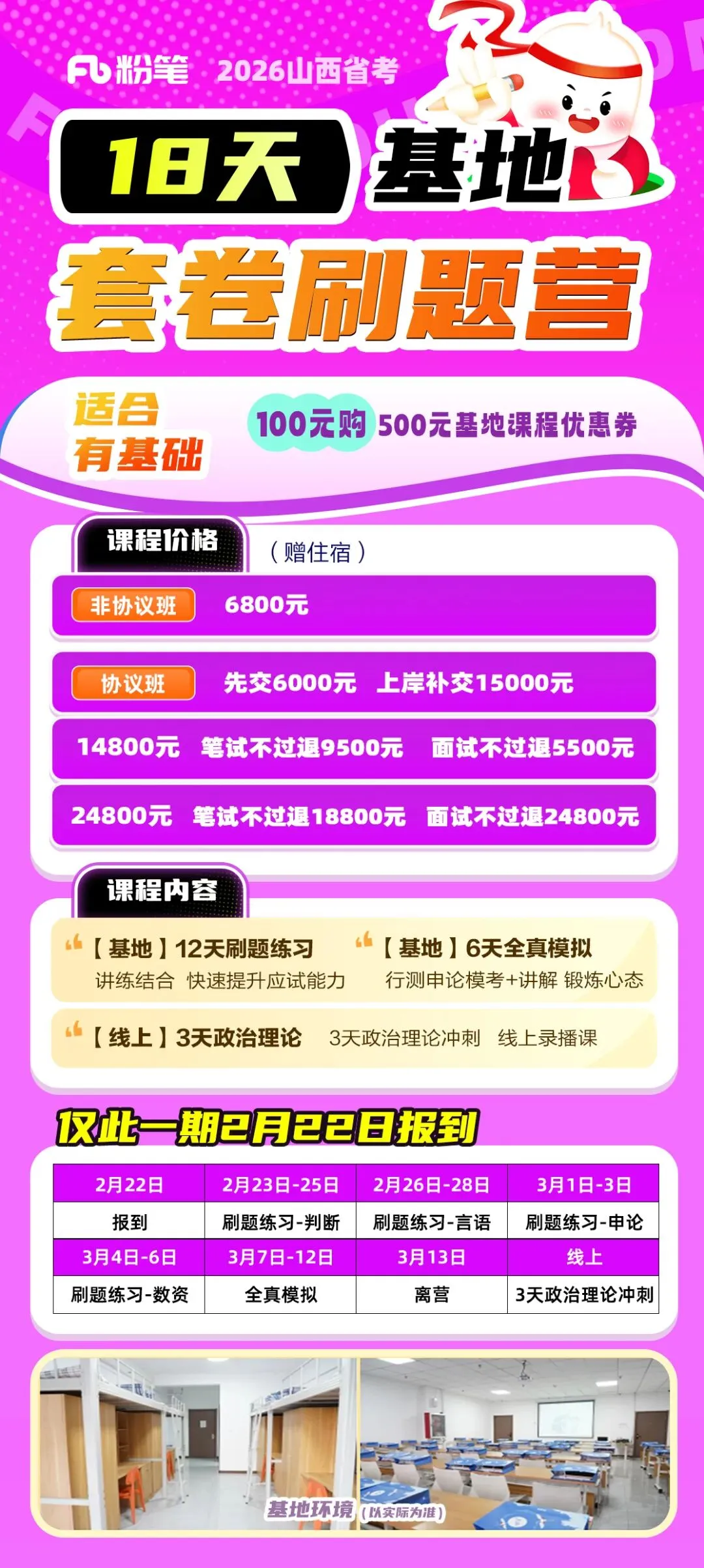 🔎26山西省考基地考前【18天套卷刷题营】12天刷题练习+6天模考基地赠送住宿 2月22日报到【100抵500】优惠适用~