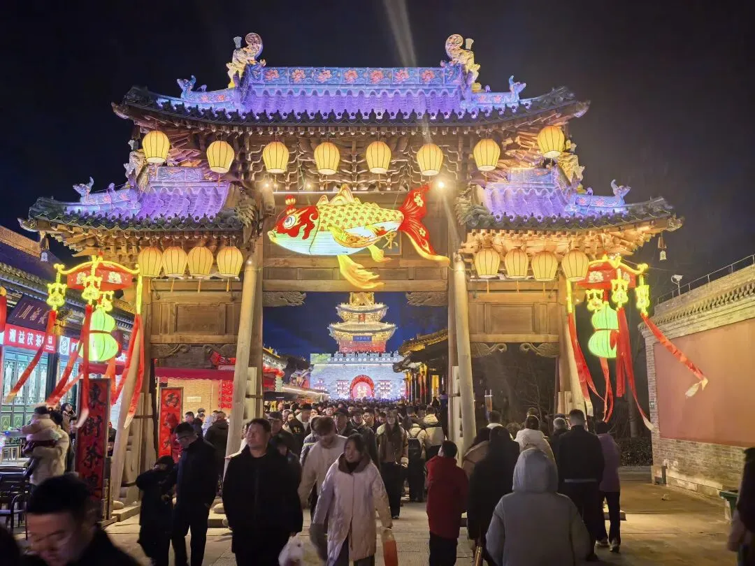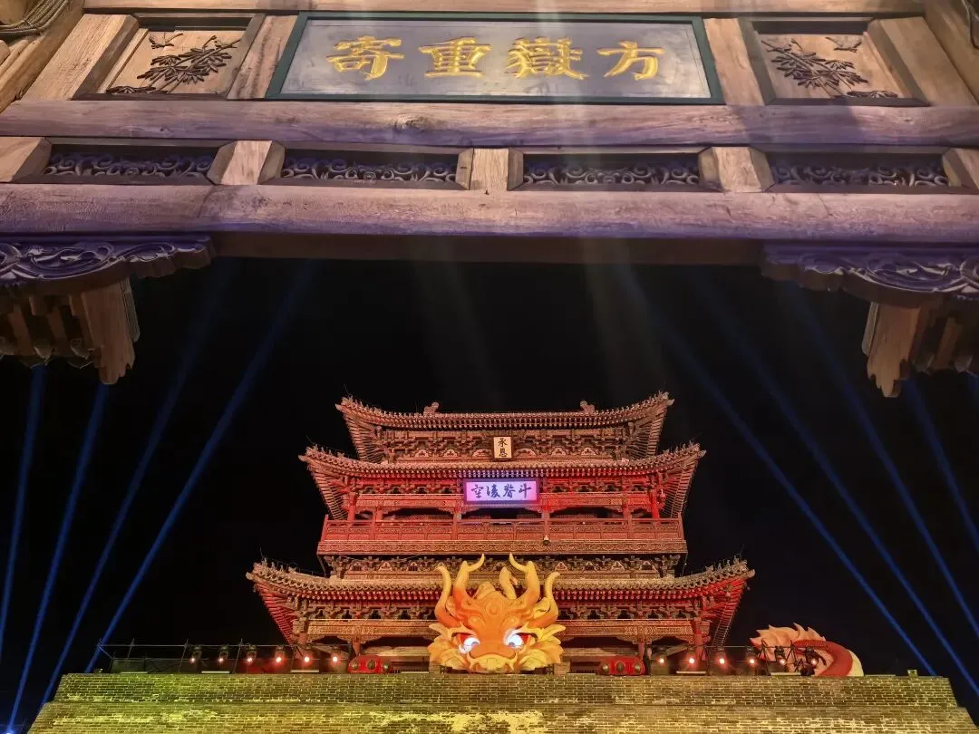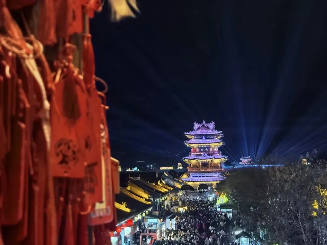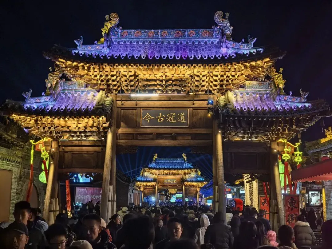 这里既有古色古香的花灯高挂,又有被LED灯光霓虹装饰的亭台阁楼,极为炫耀斑斓,璀璨夺目。虽有点荒诞,但这也是现代人对古建装饰的审美意识。