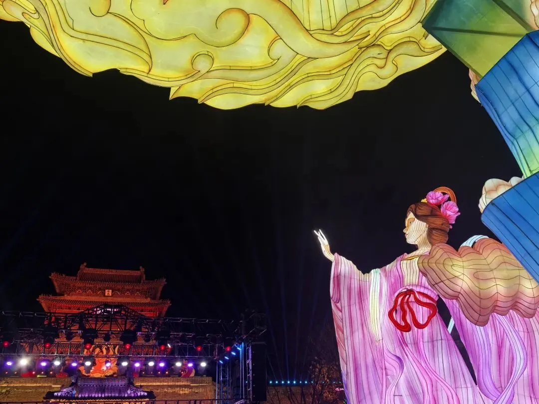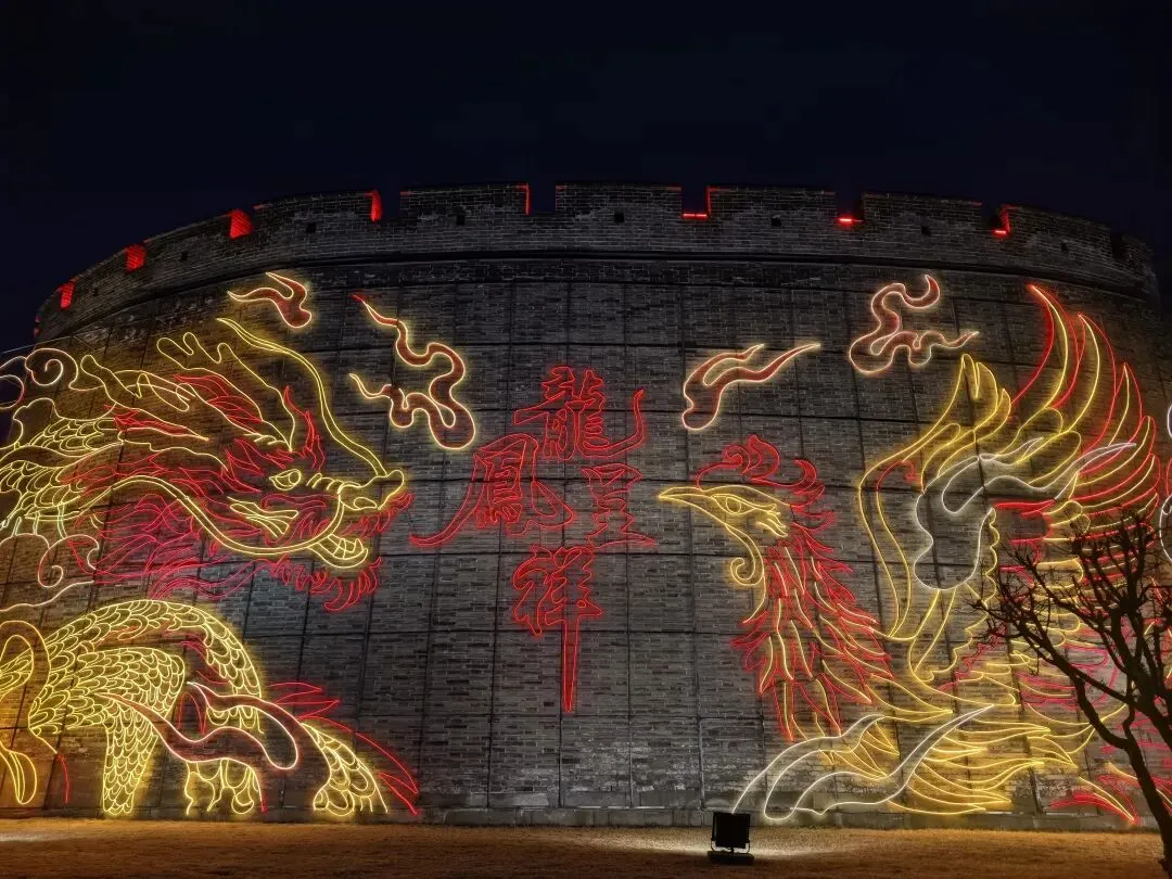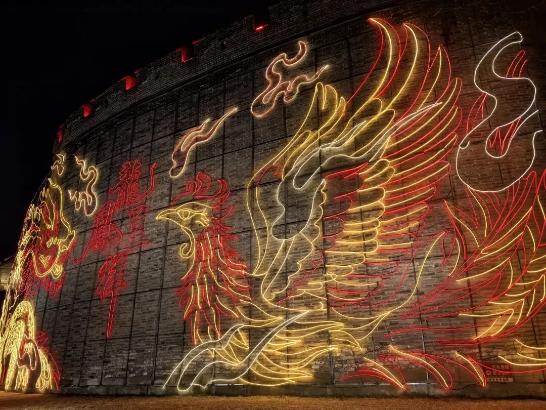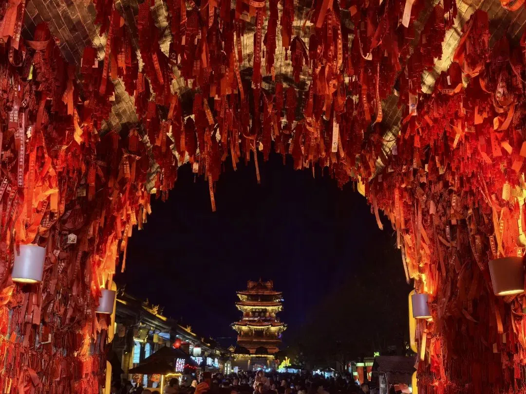 这里既有古色古香的花灯高挂,又有被LED灯光霓虹装饰的亭台阁楼,极为炫耀斑斓,璀璨夺目。虽有点荒诞,但这也是现代人对古建装饰的审美意识。