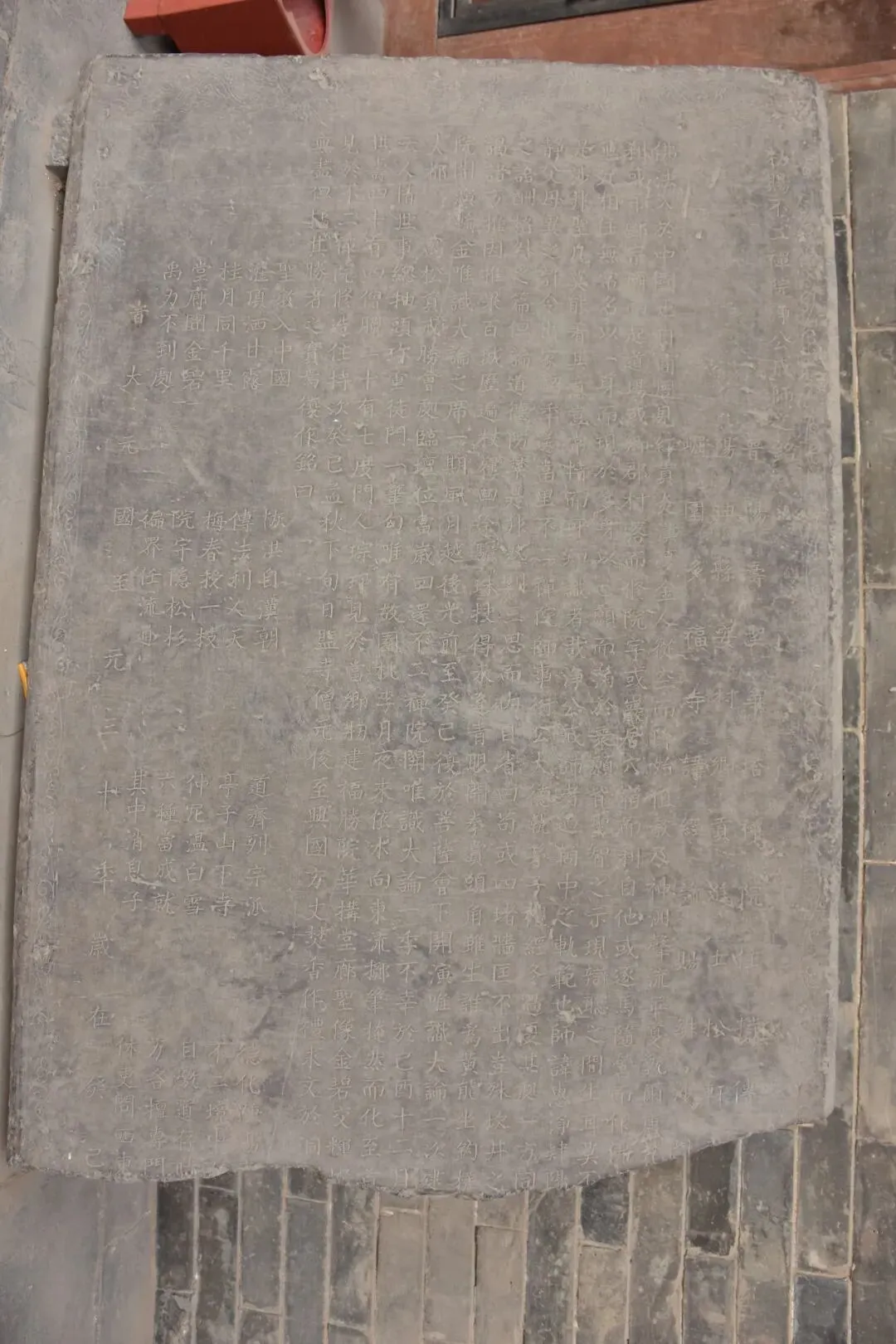 按说元人最崇尚佛教,根本没理由随意毁坏寺庙,但这说明不了问题,也许正好碰上一伙蛮子呢?真正说明问题的是一块古碑:在阳曲县城首邑西路有一座不二寺(由原址小直峪村迁来),也是全国重点文物保护单位,据云始建于北汉乾祐九年(956年),仅存的三圣殿(大雄宝殿)为金明昌六年(1195年)重修,是现存金代建筑的代表作,据云为太原地区三大金代建筑之一(另两个为晋祠献殿、清源文庙),殿内现存的9尊金代彩塑和明代壁画均是不可多得的文物精品。这里我关注的是,在大殿前廊东侧的地上,现放有一块元代残碑,此碑虽残,但是幸好断裂处离碑座不远,所以残余碑文内容基本可以通读和脑补出来。严格地说,我认为这块碑文其实不是碑文而是塔铭,也就是说是嵌在和尚墓塔上(或者立在塔林边)的“墓志铭”。其文节录如下: