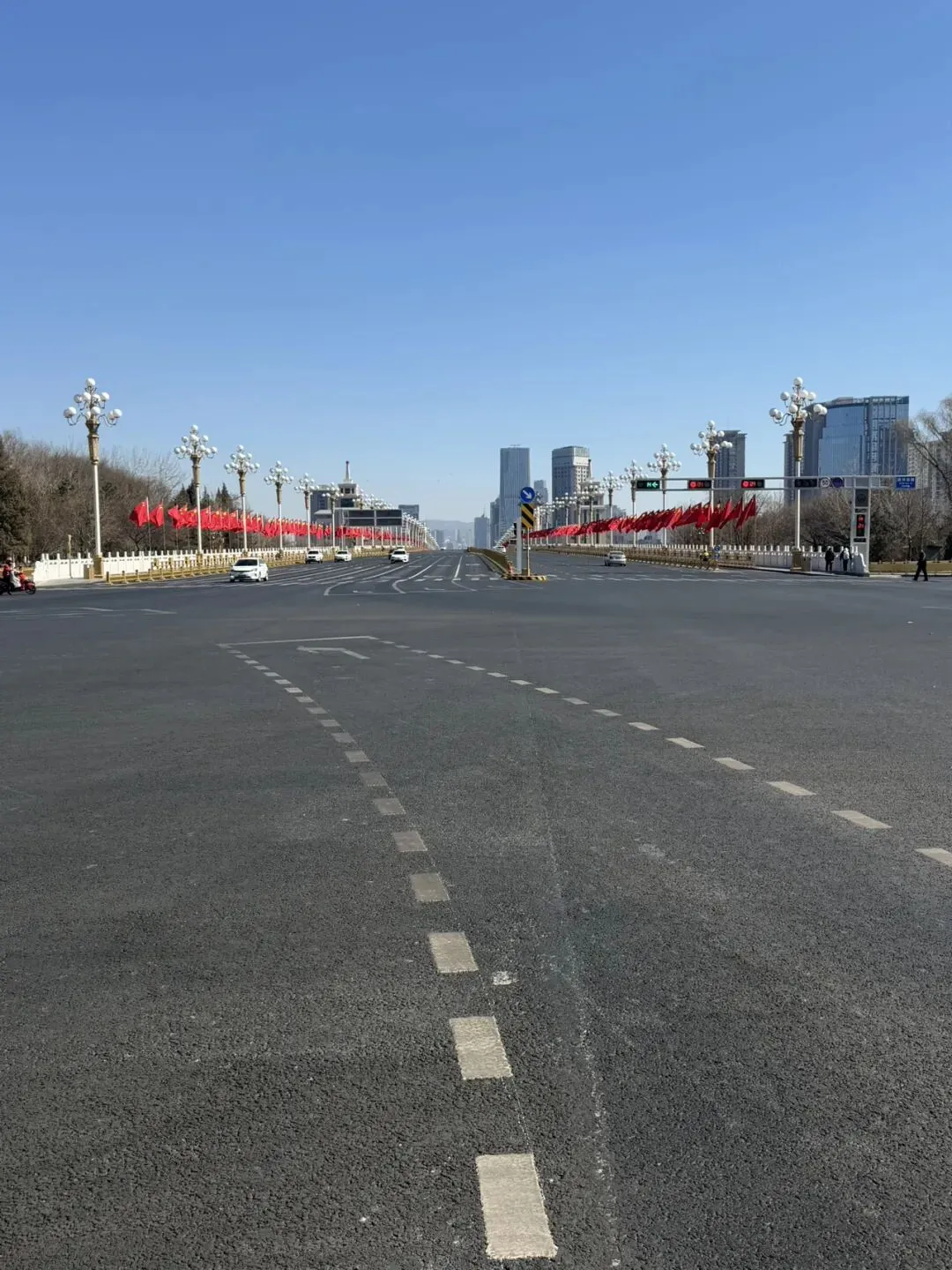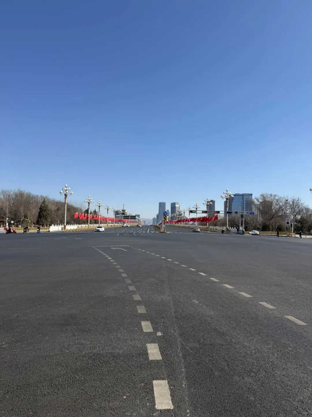 昨天我看到迎泽大街的瞬间呆掉了,光顾来到了北京,站在了天安门前的长安街,大街两旁悬挂的不是大红灯笼也不是红色的中国结,而是插满了五星红旗——一条宽度超群大街两条都是国旗!
