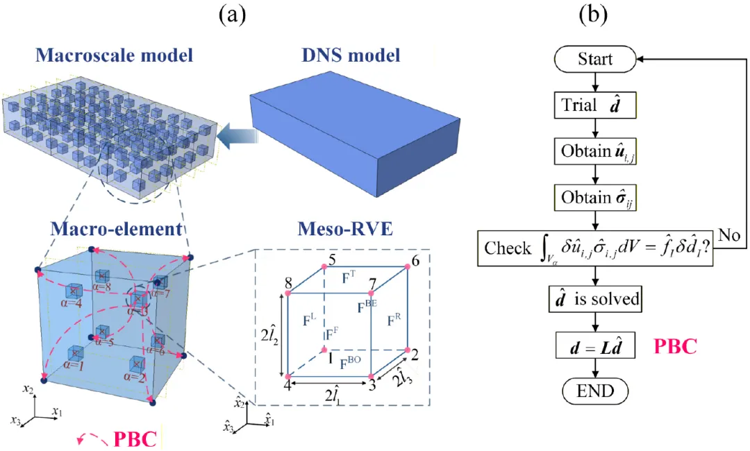 方法创新性:成功将D-FE²方法从单/两场耦合扩展至热-电-结构全耦合分析,通过推导广义Hill-Mandel条件并构建基于MPC的周期性边界条件,实现了宏观-介观尺度的能量一致与变量传递。