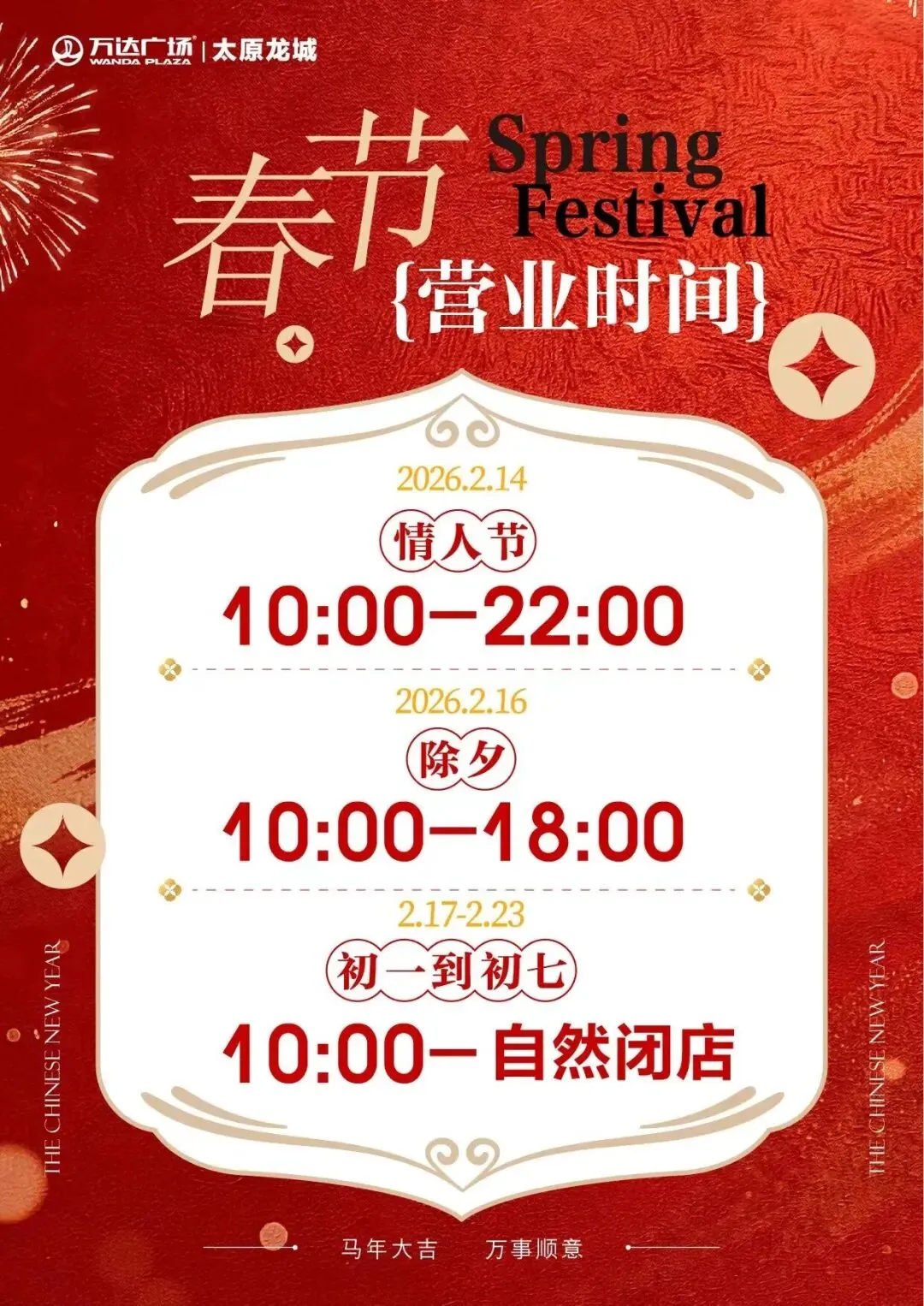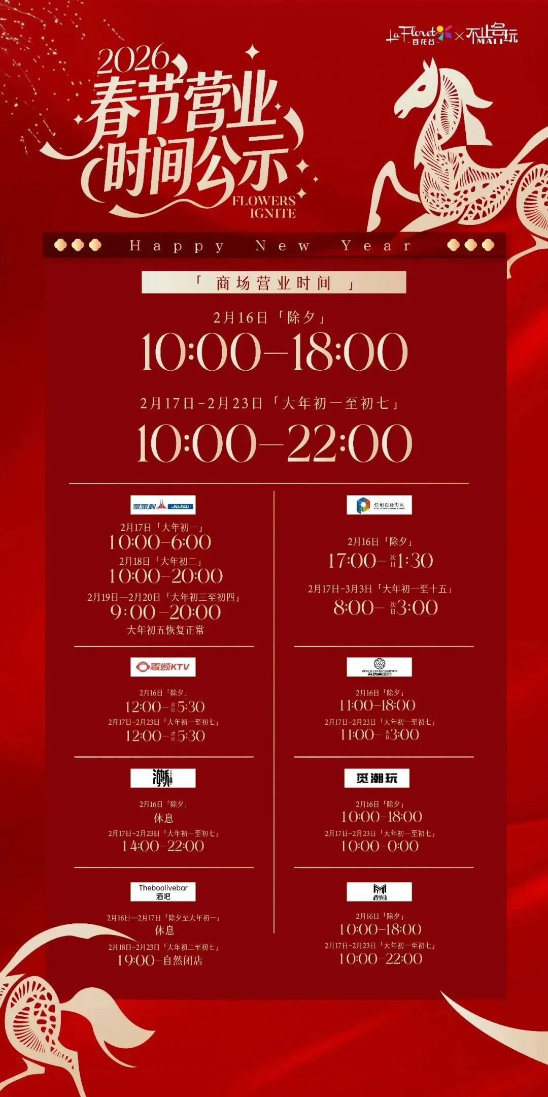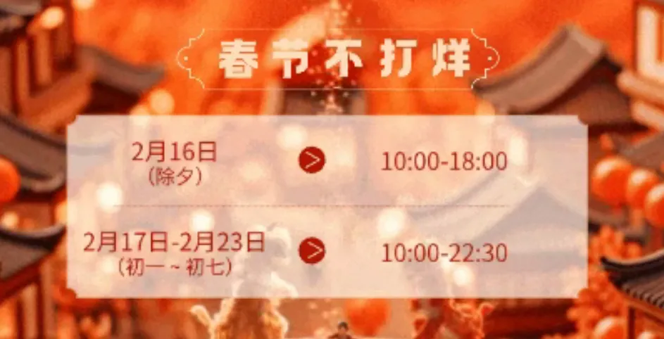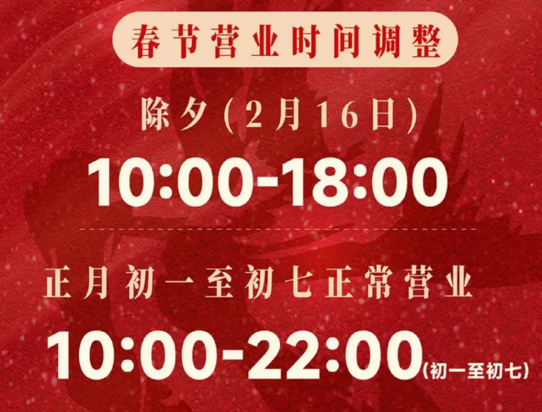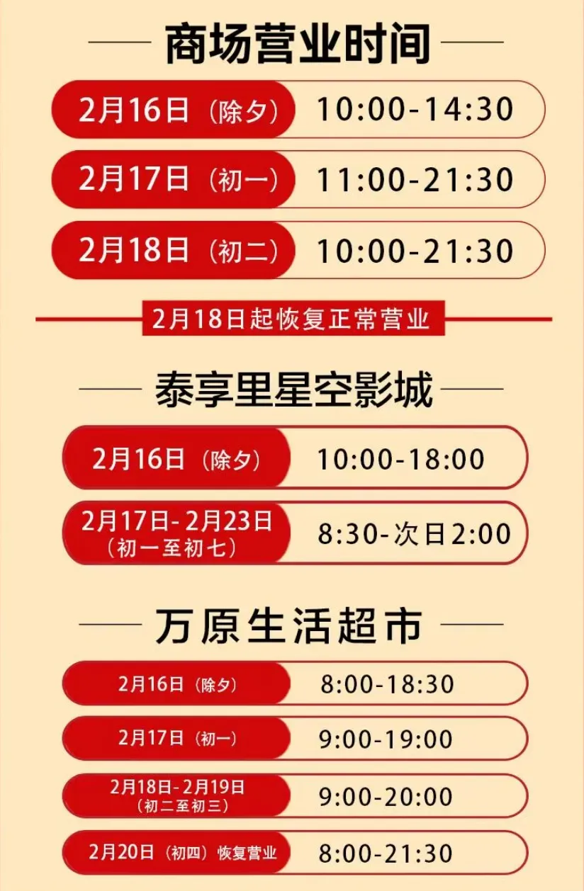 2月18日(大年初二)起各场馆恢复正常营业时间。