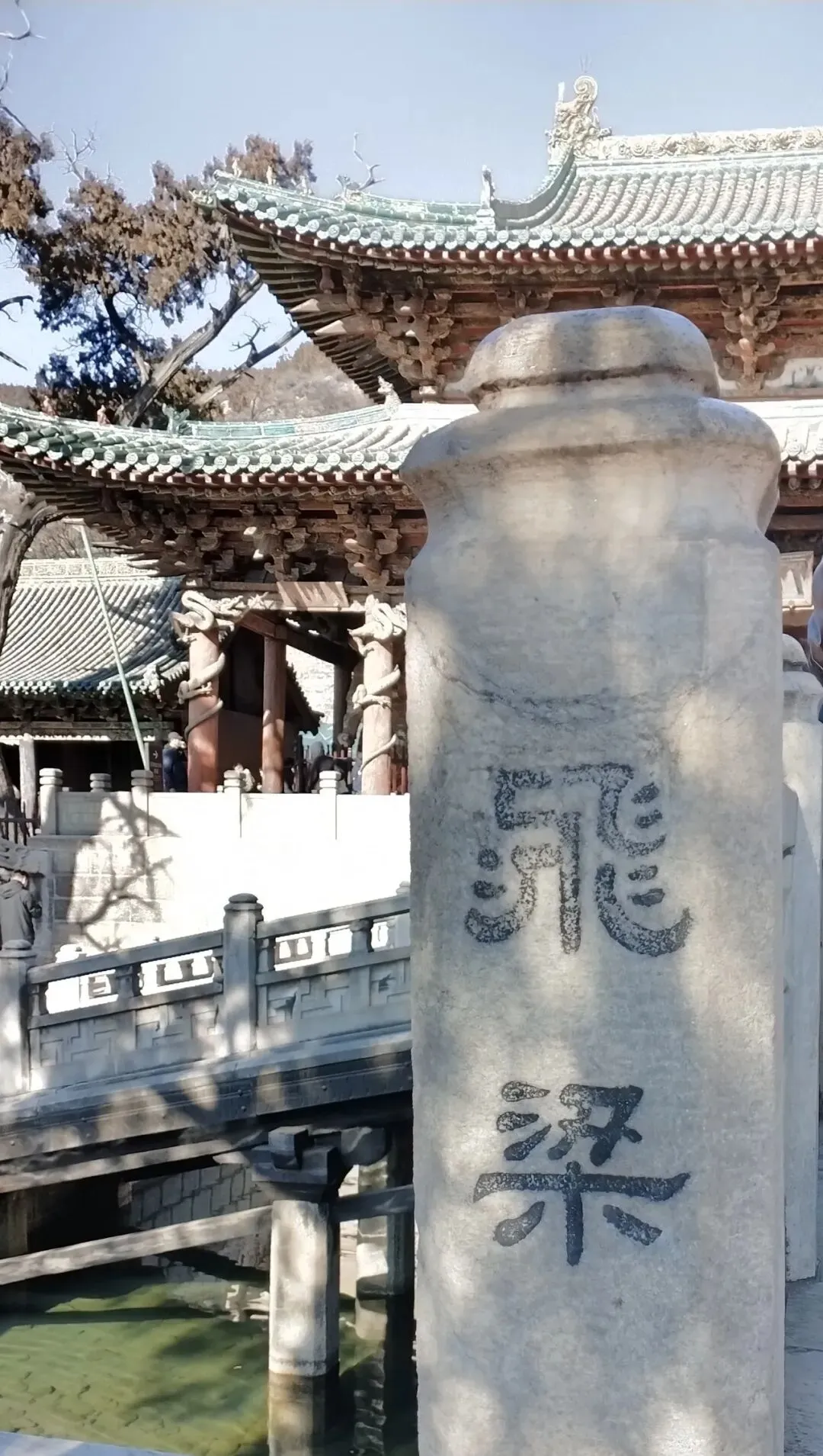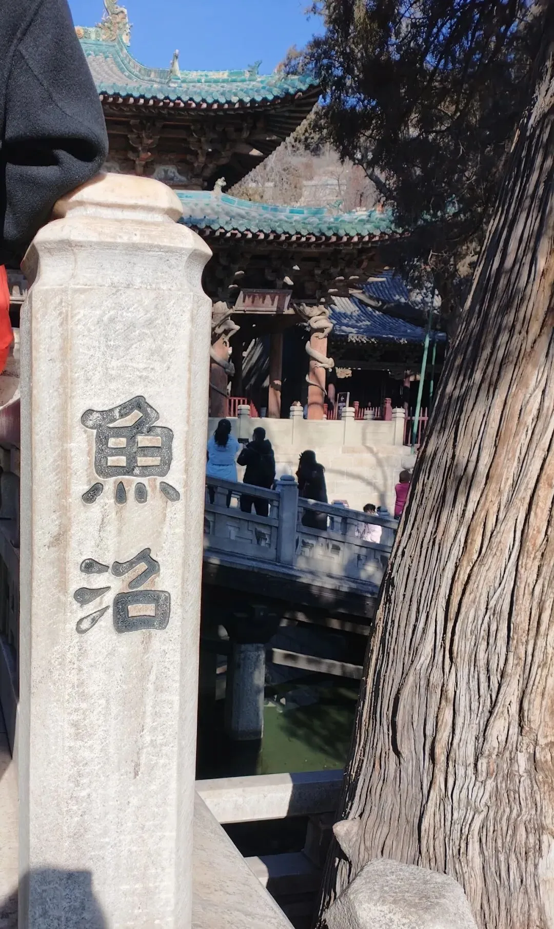 鱼沼飞梁:如果说同为晋祠三宝的圣母殿、献殿,作为爱好者的我多少还能看懂一点,对于这座“立交桥”我却是毫不在意的就从上面走了过去,甚至一度怀疑自己是不是看丢了一宝,直到看到这两个石柱,才确定脚下的桥就是晋祠三宝之一——但是依旧看不懂。