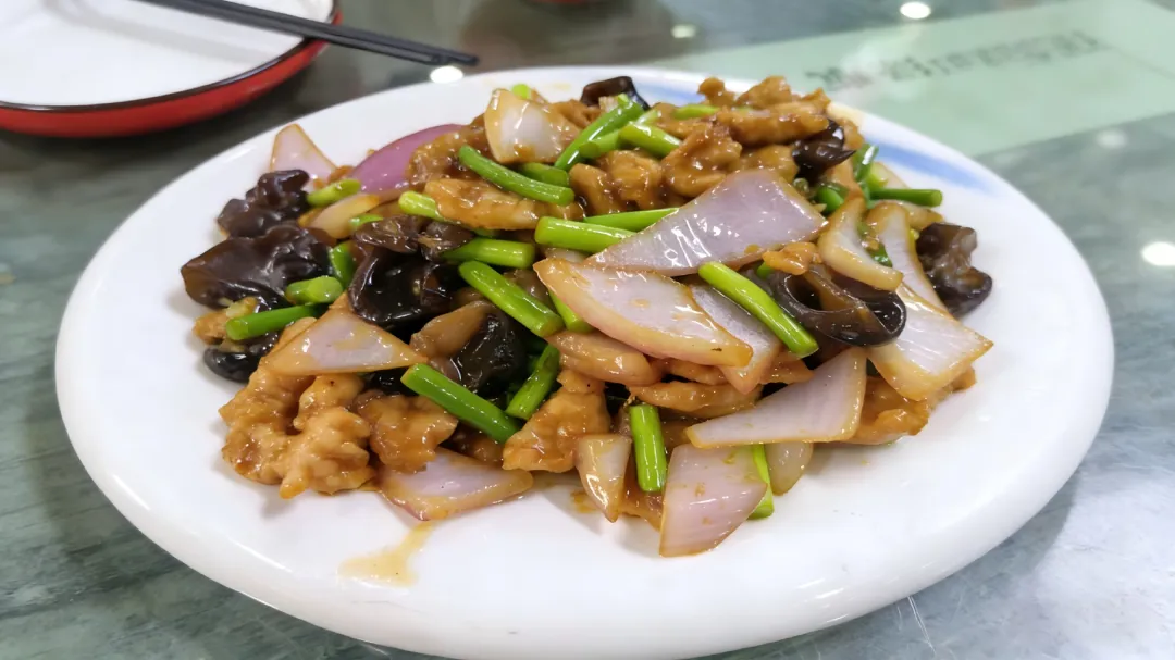 一盘合格的过油肉,必须酱汁金红亮泽,能均匀地挂在每一片肉和配菜上。用它来拌饭,颗粒分明的米饭裹上酱汁,就着滑嫩的肉片,三碗下肚,才是对这道晋菜之魂最基本的尊重。