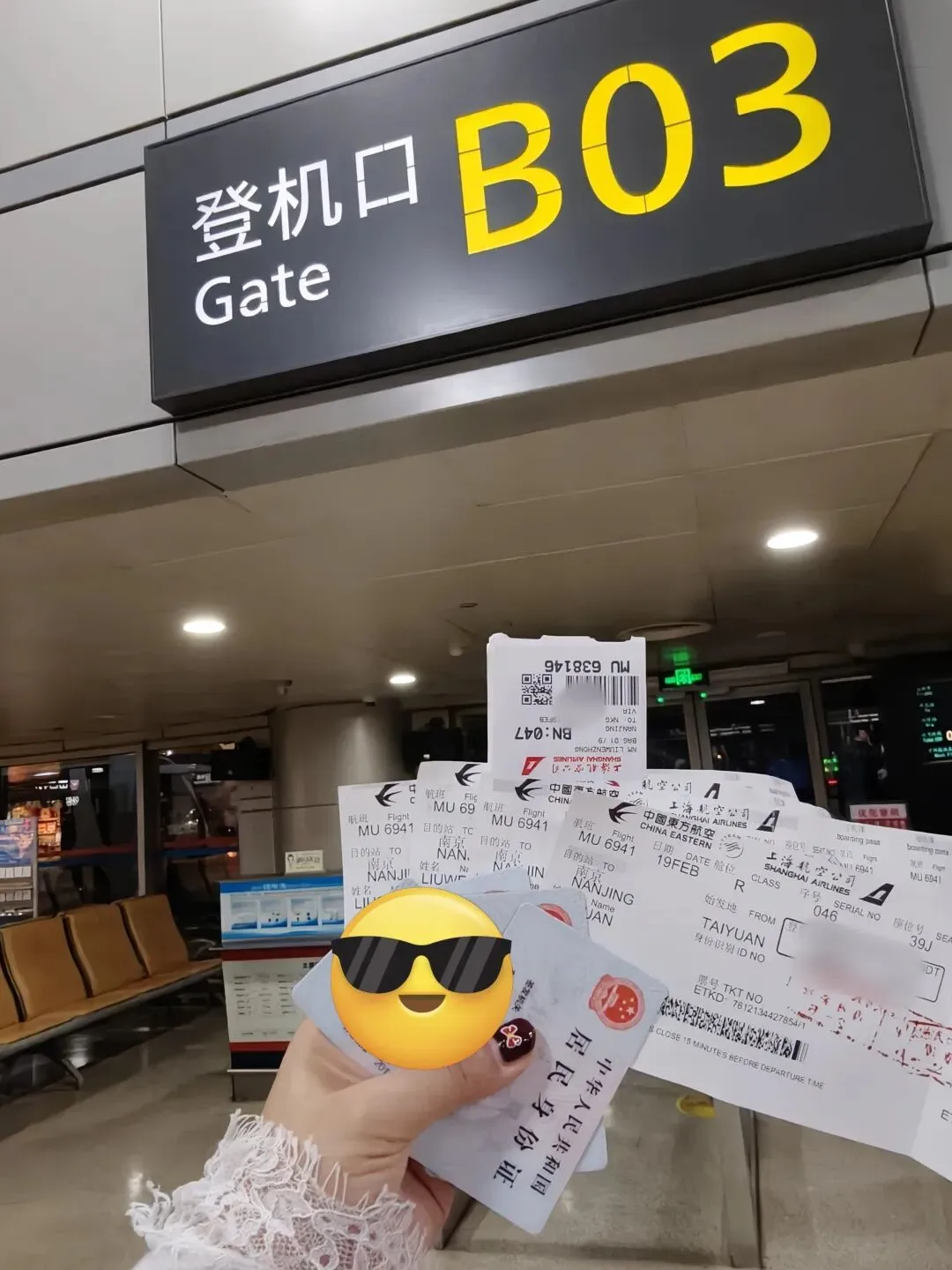 这是我们人生中第一次坐飞机✈️。从太原飞往南京,在B03登机口,我们既紧张又兴奋。登机时,看着巨大的机身,心里满是期待。飞机起飞后,窗外的城市渐渐变小,我们被云海包裹,像在云端漫步。机上的餐食和咖啡,都成了这次旅程里特别的记忆。