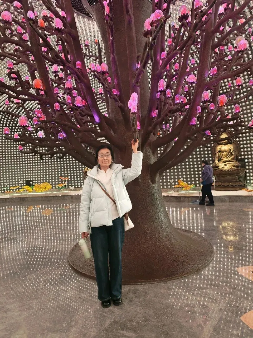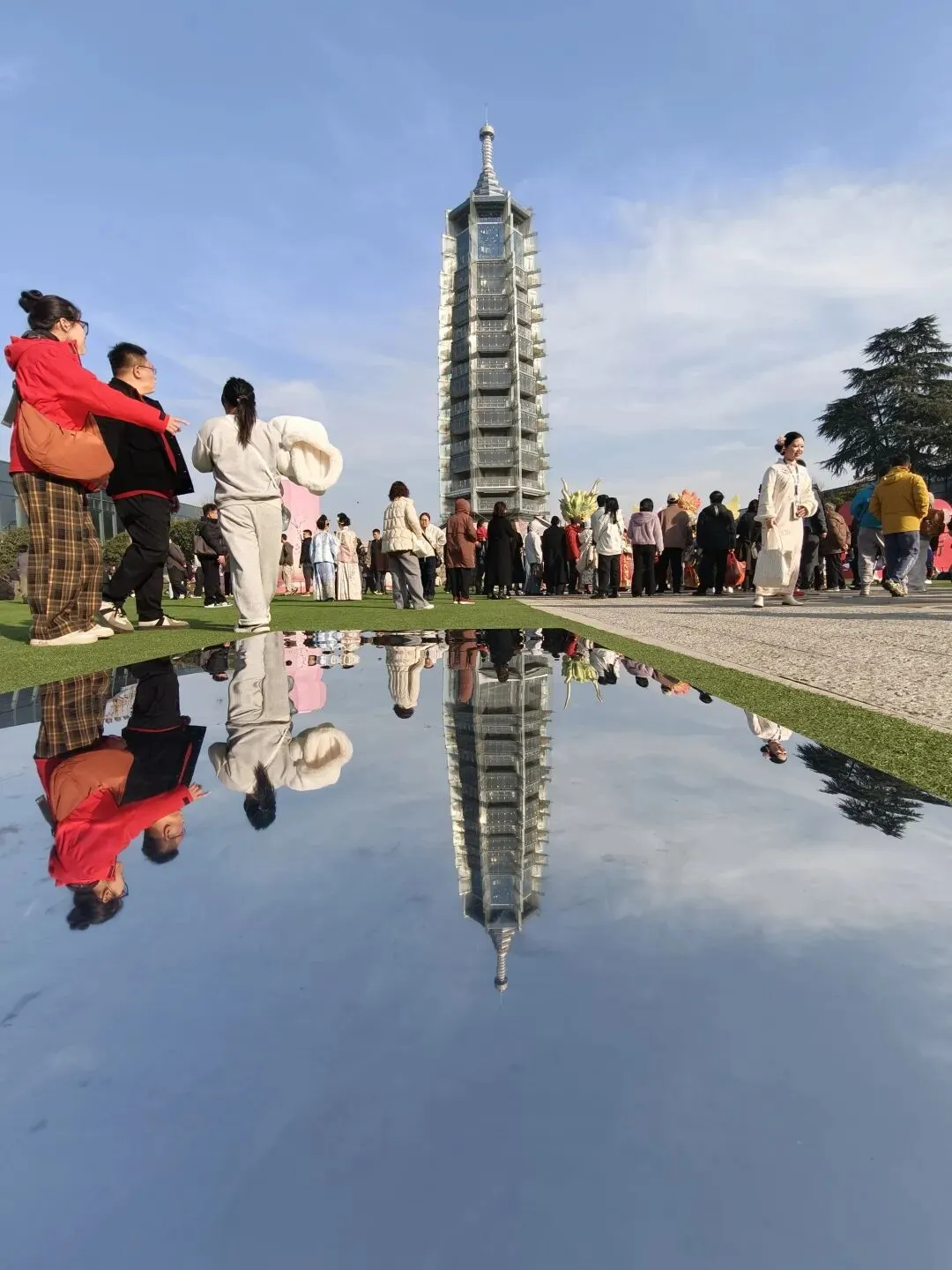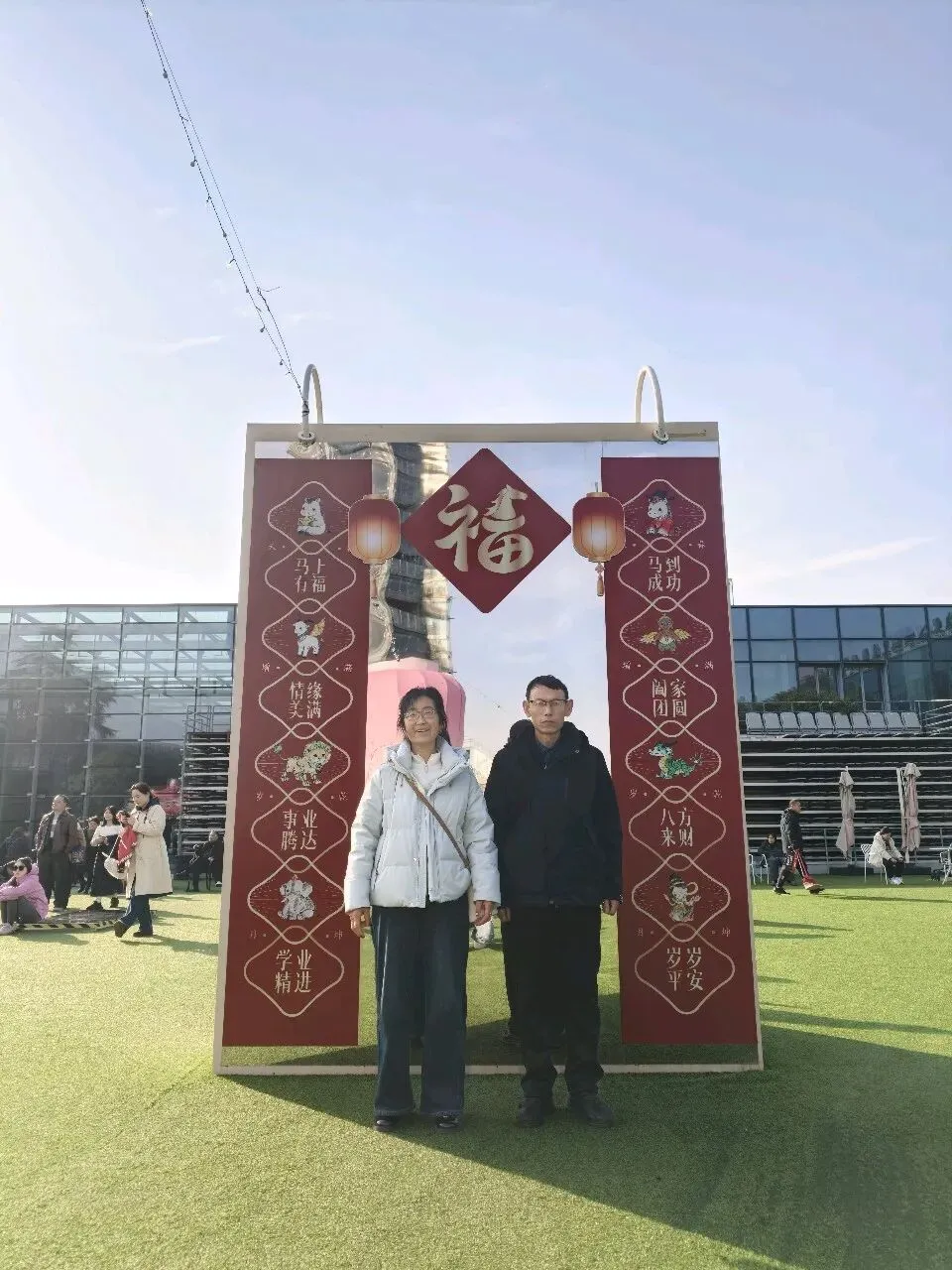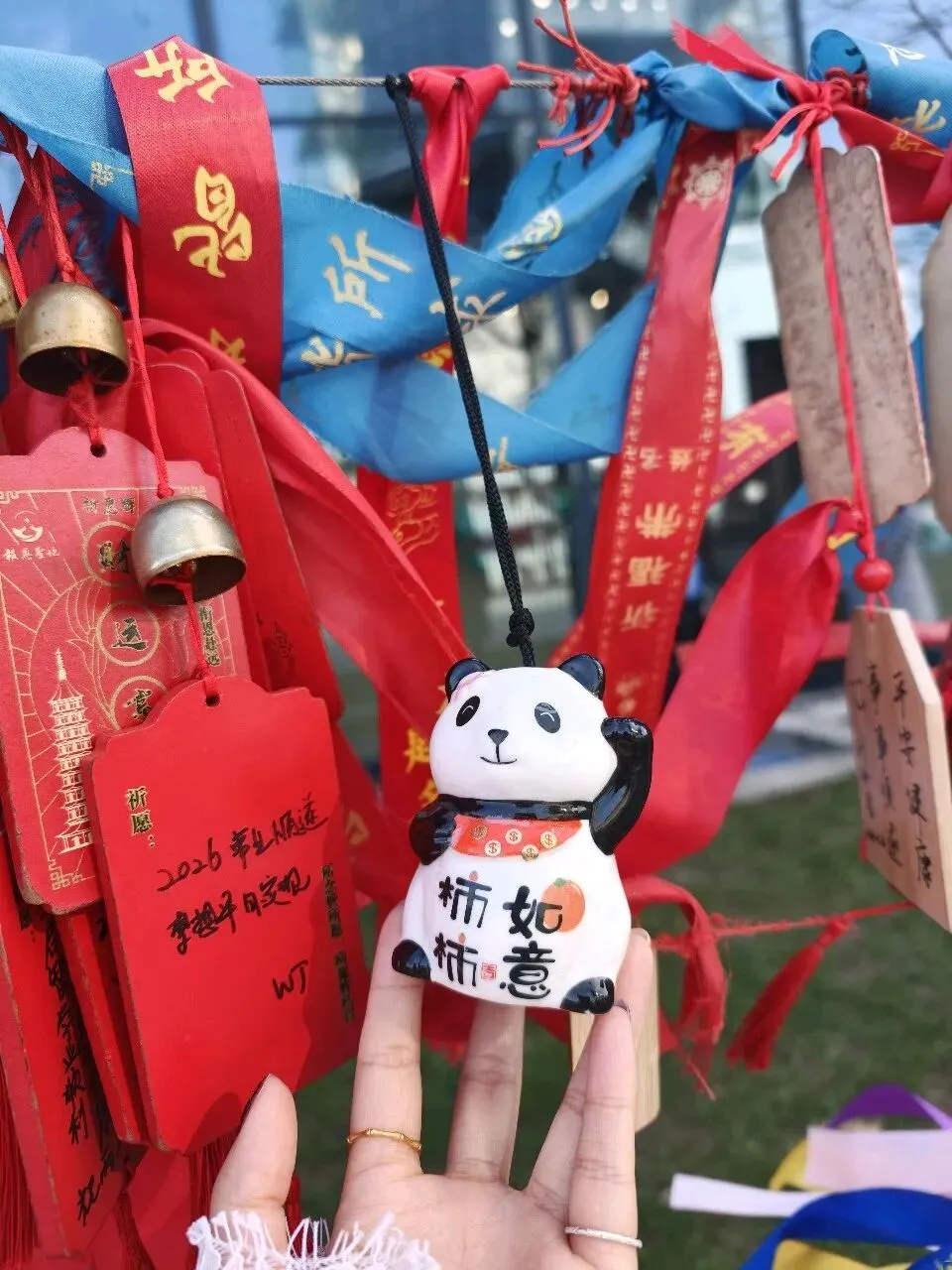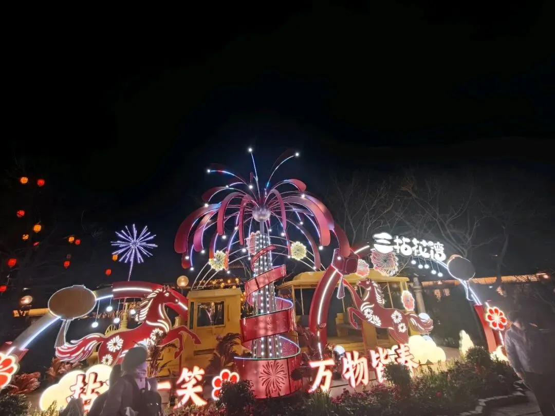 从云端降落金陵,便一头扎进了六朝烟水的温柔里。在夫子庙的青石板路上,红灯笼串起了人间烟火,手里捧着印着“南京”的竹筒冰淇淋,和妈妈在秦淮河畔留下合影。文创店里,“昭昭如愿”“平安喜乐”的小挂件,把新年的期许系在钥匙扣上,也系进了心里。 大报恩寺的琉璃塔在晴空下熠熠生辉,千年的梵音与现代光影在此交融。博物馆里,东吴赤乌十年的建寺故事娓娓道来,而夜晚的拈花湾,则用一场紫色的水幕喷泉,把江南的禅意揉进了夜色里。 当孔明灯缓缓升向无锡的夜空,当“拍拍马屁,福气自来”的巨型福字被我们轻轻拍打,这场跨越金陵与禅意小镇的旅行,便成了这个春节最温暖的注脚。原来最好的时光,就是和家人一起,把日子过成诗,把愿望写进风里。