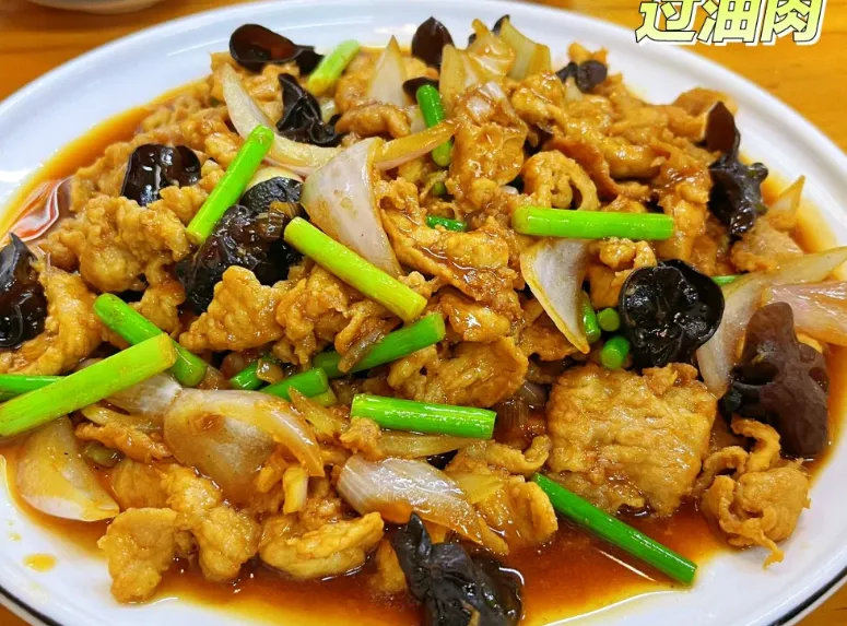 【过油肉】这是山西菜的灵魂。精选的里脊肉,不是直接炒,而是先裹上蛋液浆好,在宽油里滑熟,讲究一个“油宽火旺”。肉片金黄舒展,再配上黑木耳、蒜苔爆炒。出锅前,必须淋上一勺宁化府的老陈醋。那酸味不是为了酸,是为了把肉香激出来,咬一口,外软里嫩,醋香在舌尖打转,绝了。