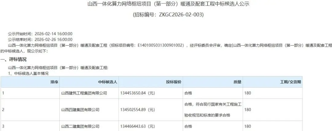 招标工作分别顺利收官,中标候选人名单正式对外公示。