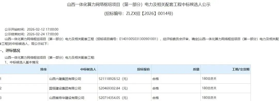 建设太原南丨算力大项目配套工程招标达1.3+5.2亿...