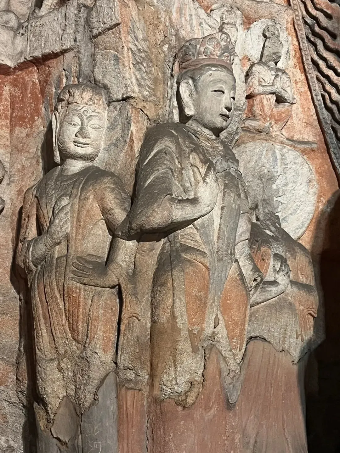 开凿石窟,据说是从头顶开始,一点点运出碎石,自上而下,凿出佛的形象,整个一个山壁,开出这么多的佛,如今成为艺术和历史,可当时花费多少人力物力财力在这些个“无用”上面。