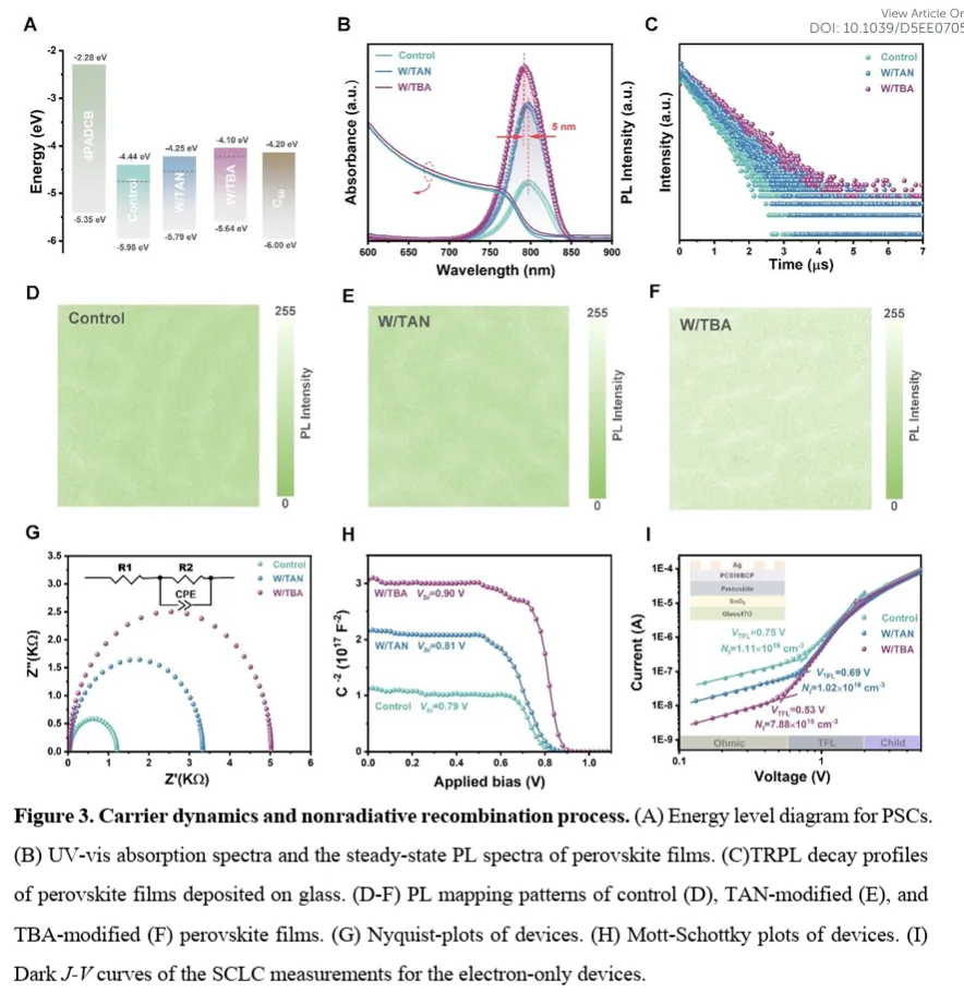 (3)可扩展制备验证:基于TBA的大面积模块(10.24cm²)效率超过20%,彰显其从实验室走向产业化的潜力。