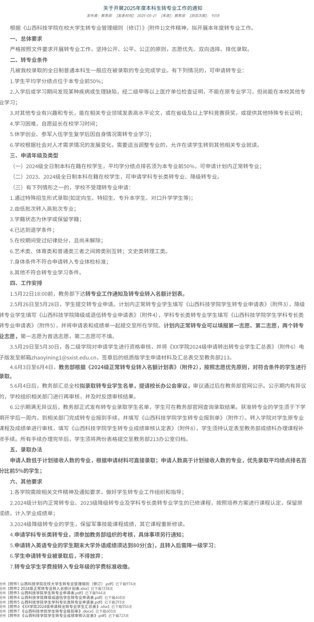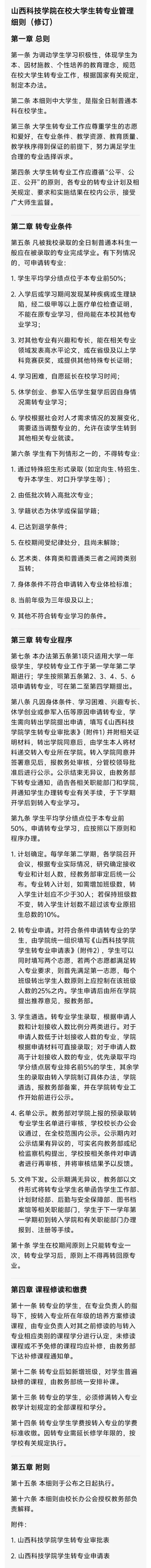 《山西科技学院在校大学生转专业管理细则(修订)》内容摘要: