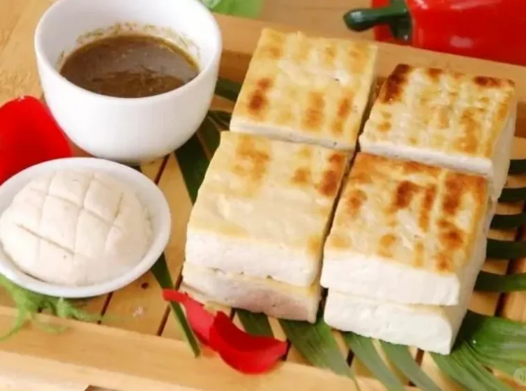 老豆腐切成厚片,先在五香调料水里煮透,捞出来沥干。放在铁鏊子上,用炭火慢烤,直到两面金黄焦脆。吃的时候,一定要蘸着蒜泥、辣椒和醋调的汁。咬开酥皮,里面的豆腐热气腾腾,又烫又香,满嘴都是豆子的本味。