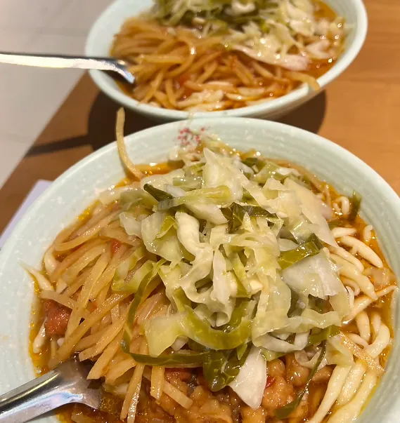 中午得吃面。这里的面食花样多到让你眼花:饸饹面、擦嵴古、剔尖……每一碗都是碳水的狂欢。口感不是那种精细的软,而是带着劲道,嚼在嘴里,那是粮食最本真的香。