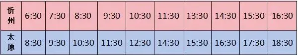 忻州首班时间:06:30