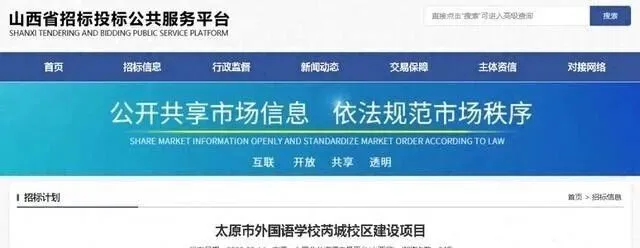 重磅!4.69亿资金落地太原!外国语学校芮城校区勘察设计正式开启招标。