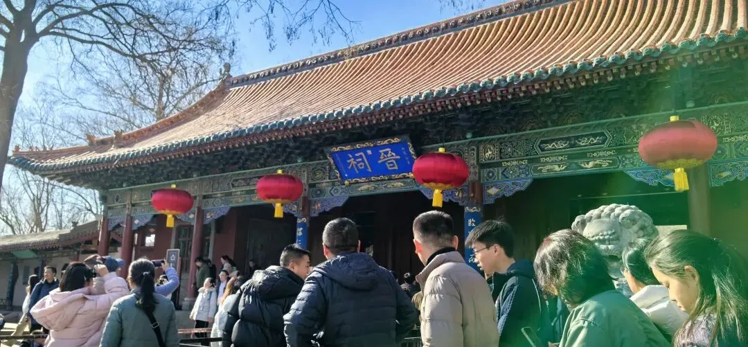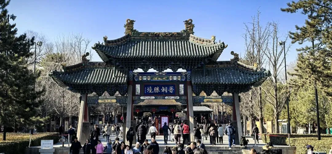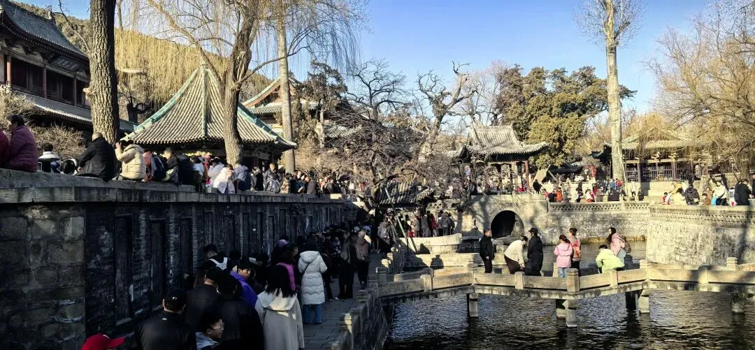 如山西文旅口号所言,"五千年很远,山西很近",又或者是"你来山西三五天,山西还你五千年",山西省具有浓厚的文化底蕴。作为省会,太原亦如是。在晋祠门口,便听到一句话,大意是:不到晋祠,就不算到太原。所以在天气晴好的年初二,晋祠游人如织,不论是进门,还是打卡拍照,都要排队。尤其是进入晋祠主景区后,摩肩接踵,整个景区热闹非凡又拥挤不堪。一路走,一路拿着手机听讲解,目之所及,皆是历史悠久的文物。我想好好地去摸一摸那些好几千年的柏树,但很多人在拍照打卡;我想走进圣母垫好好看看那盘龙柱,却被人流推着往前走;更别说鱼沼飞梁上站满了游客,金人台旁围满了一团又一团的游客……晋祠的的确确是个好地方,应该安安静静地感受这一份独特的深厚的历史,但游客太多,没有办法能好好沉浸之中,我也变成了一个走马观花的人,实属遗憾。