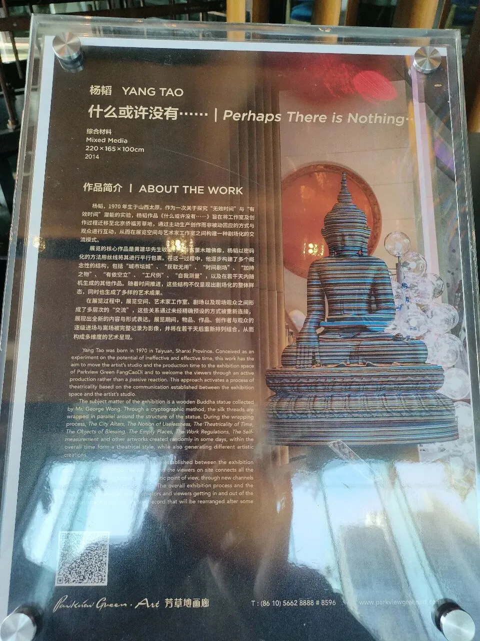 在《什么或许没有……》中,我们看到的不仅是一件包裹着佛像的装置,更是一位艺术家对自身文化根脉的重新审视。他用丝线缠绕的,不仅是一尊古董,更是我们与传统之间复杂而微妙的关系。当我们站在这件作品前,看到的是被层层包裹的佛像,也看到了我们自己——在这个快速变化的时代里,我们每个人都在被各种观念、信息和欲望所包裹,而我们所追寻的“真实”,或许就藏在这层层包裹之下,等待着被重新发现。