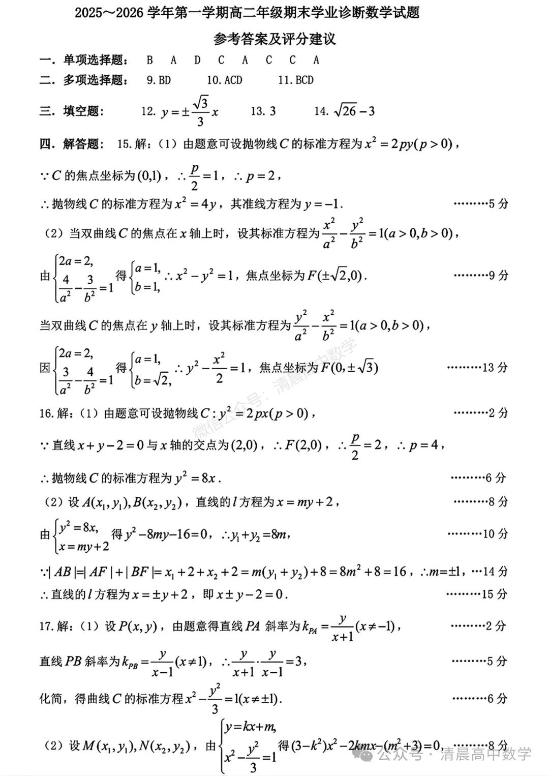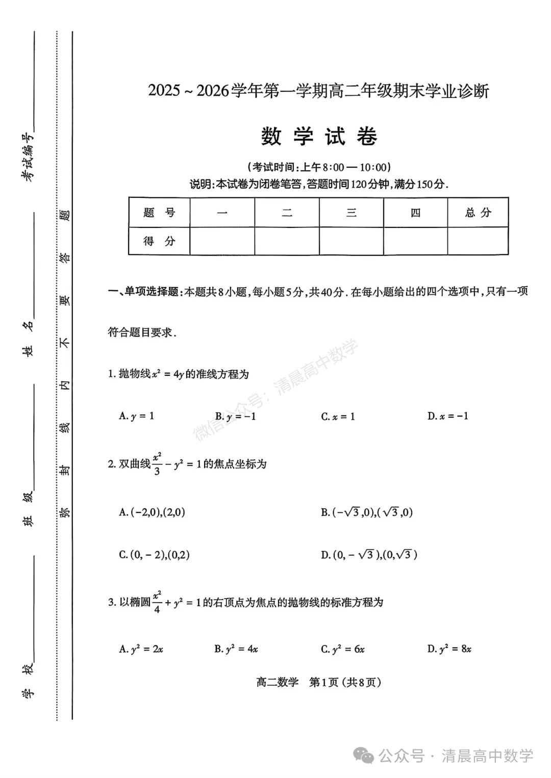 >【高二】山西省太原市2025-2026学年高二上学期期末考试数学含答案(word版)