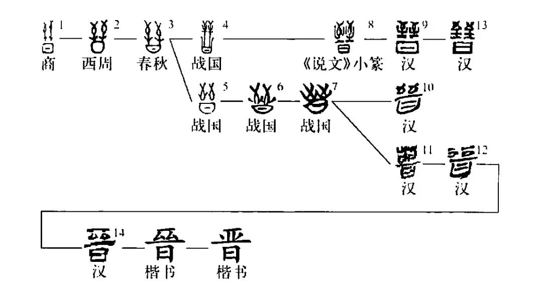 “晋”字自甲骨、金文以迄小篆,其流变一脉相承,本身便是一整部上古华夏饮食进化史、文明进化史——自狩猎采食、辨谷艺稼,至于农耕肇兴、私产萌生、筑城守业、邦国肇建,尽蕴于一字之中。