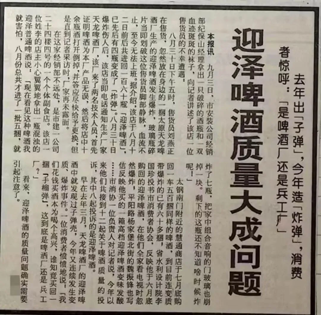 当时这种批评报道一般套路是这样的:报纸批评后厂家表示整改,记者再写一篇反映整改成效的表扬稿,事情就过去了。厂是太原的厂、报是太原的报,谁和谁也没有仇。