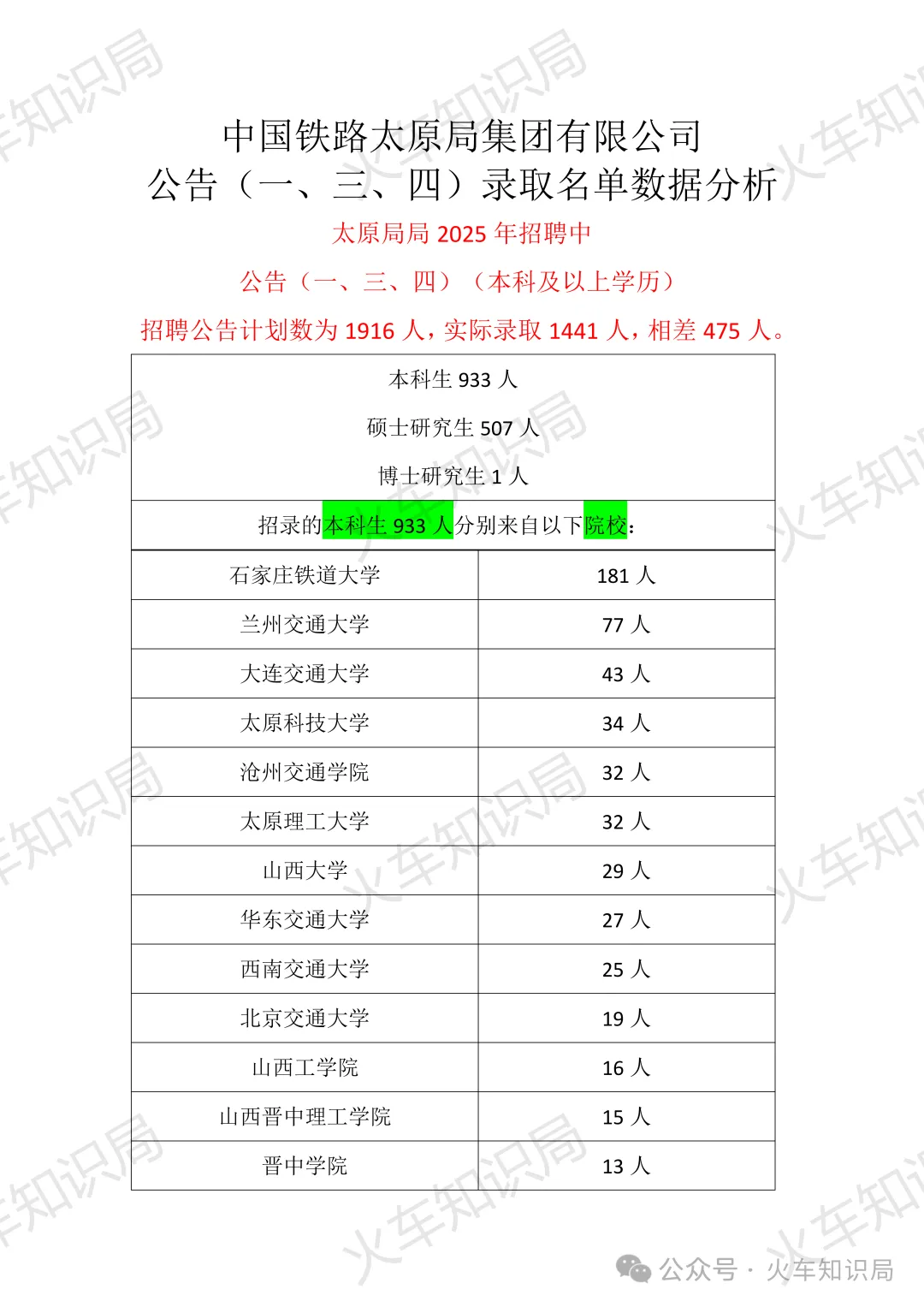 2025年太原铁路局本科及以上学历录取情况