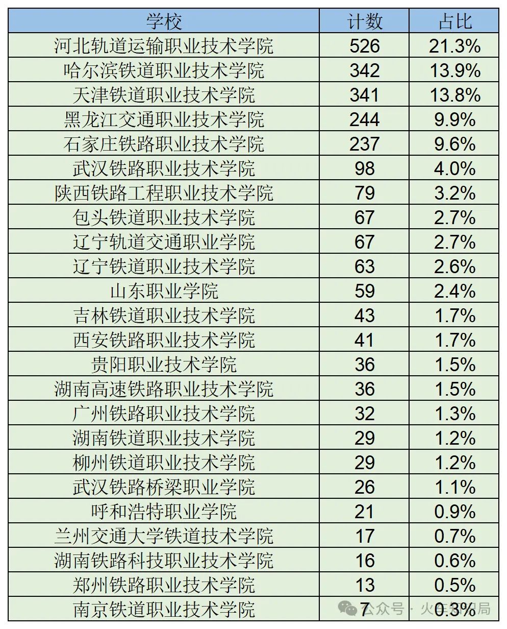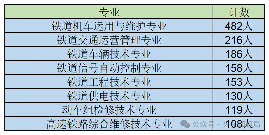 2025年太原铁路局专科院校录取名单公布(2453人)排在前几的录取专业分别是以下几个,招聘人数在100人以上: