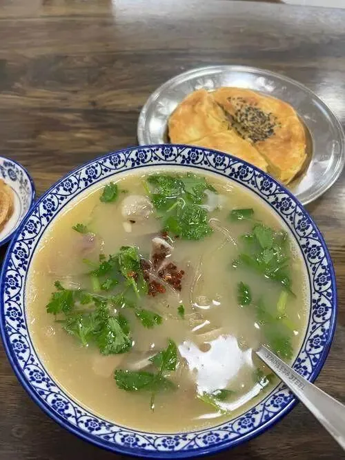 早晨,得从一碗羊杂开始。不是那种清汤寡水的,是红油赤酱、羊油辣子铺满碗面的那种。粉条顺滑,羊杂软烂,一口汤下肚,额头微微冒汗,整个人就醒了。配上一个刚出炉的油饼,酥脆吸汤,那滋味,扎实。