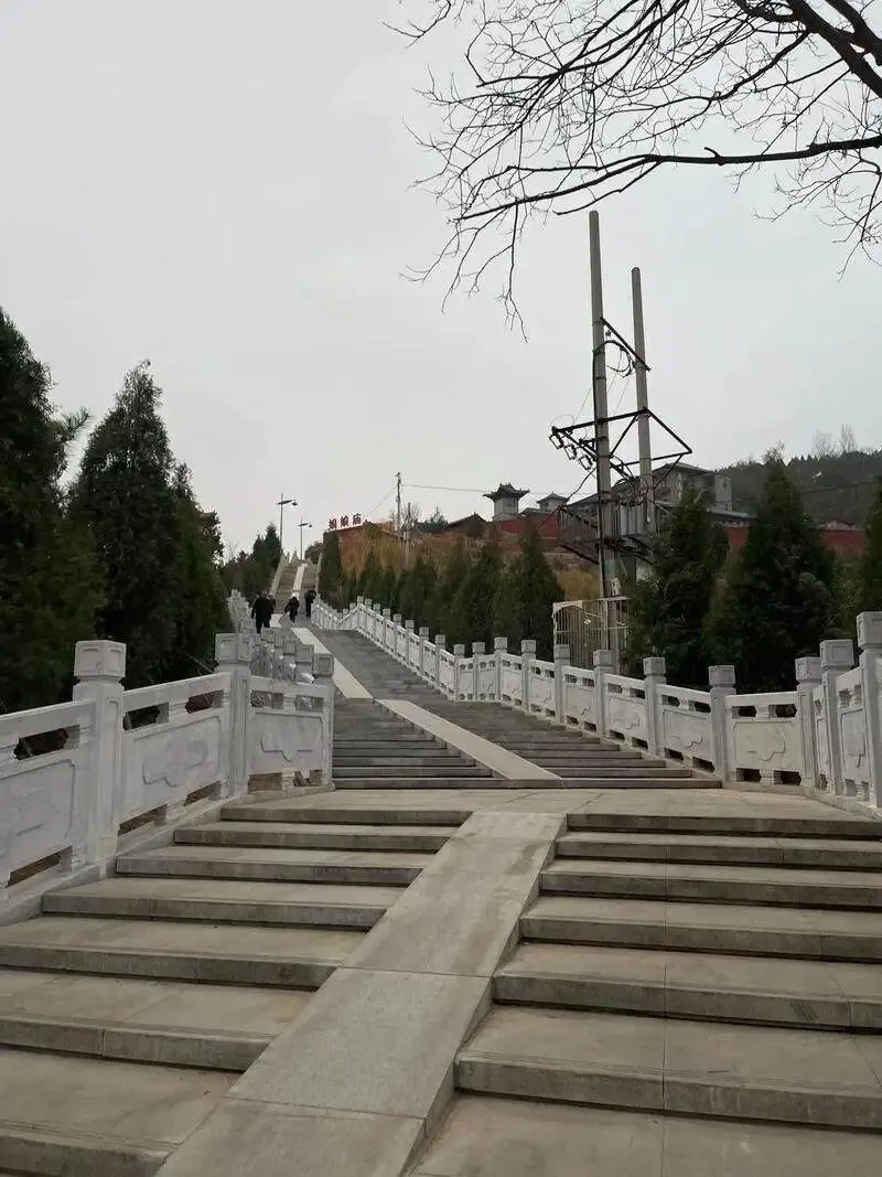 不要大中午去,会被晒晕。最好的时间是傍晚。顺着台阶慢慢往上爬,路边有古柏森森,空气里有淡淡的香火味。山顶有座塔,视野极好。