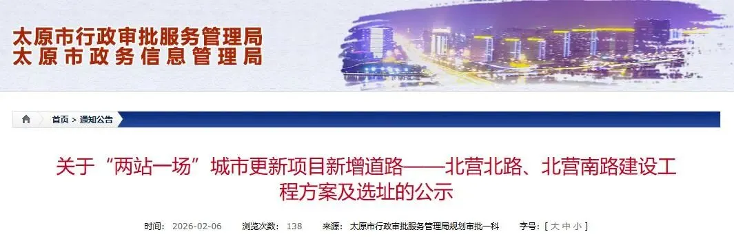 太原城市更新:北营北路、北营南路建设项目公示→→