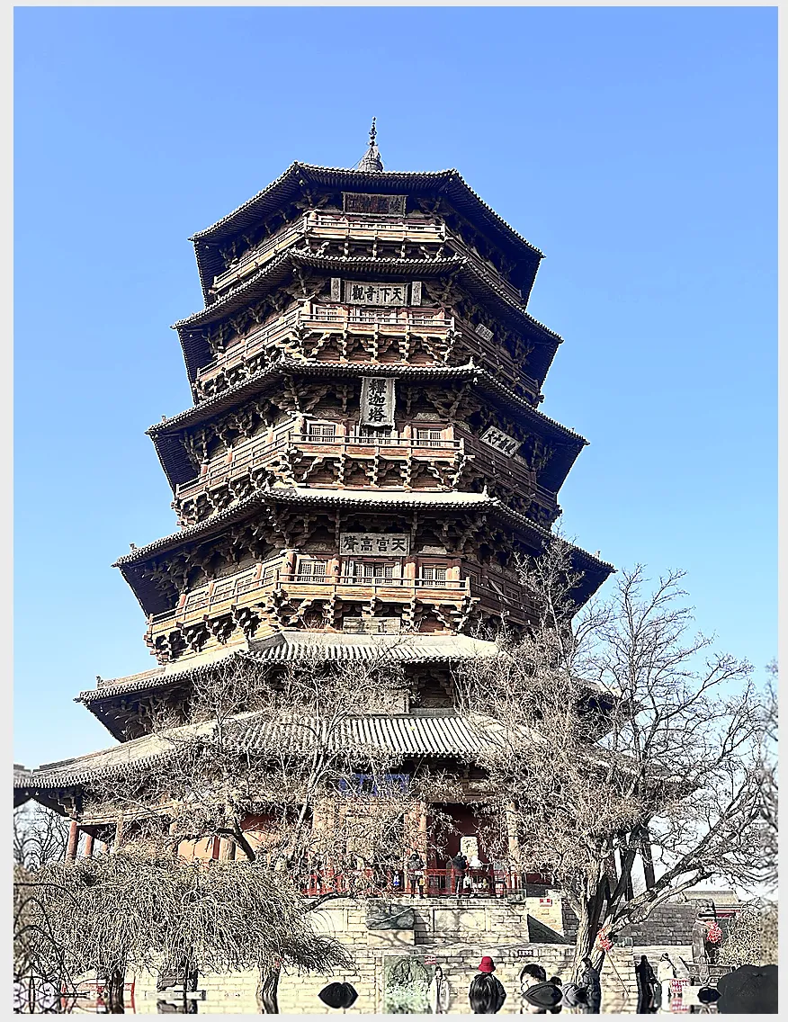 城里的日子,是围着塔转的。不是为了"打卡",而是为了陪伴。那座近千年的木塔,不用一颗铁钉,全靠木头与木头的咬合,撑起了近70米的高度。它经历过地震,挨过炮火,却依然站在那里。这种力量,不是视觉上的冲击,而是一种心理上的抚慰。你看着它,心里那些浮躁的念头,自然就落了地。