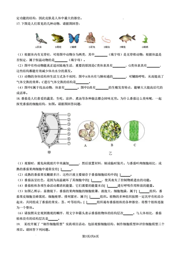 寒假预习卷精选:山西七年级生物第二学期阶段一试卷分享