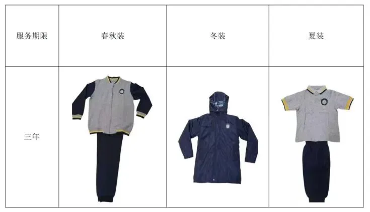 质量标准:符合《中小学生校服》(GB/T31888-2015)、《国家纺织产品基本安全技术规范》(GB/T18401-2010)、《婴幼儿及儿童纺织产品安全技术规范》(GB/T31701-2015)、《中小学生交通安全反光校服》(GB/T28468-2012)、《消费品使用说明第4部分:纺织品和服装》(GB/T5296.4-2012)、《羽绒服装》(GB/14272-2021)标准及其引用标准。