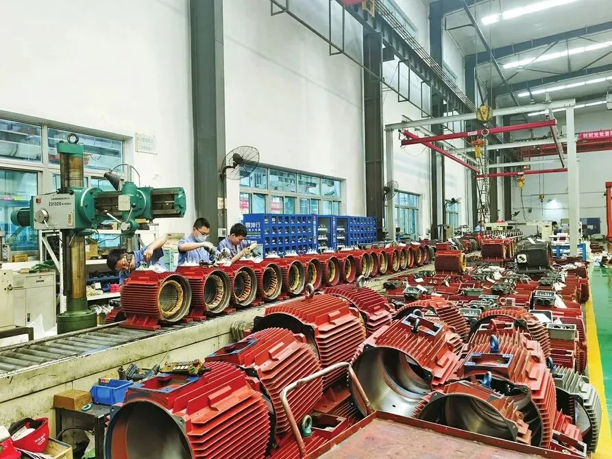 山西电机制造有限公司致力于高效节能电机的研发,YE5电机获得工信部2021年“能效之星”称号。截至7月底,高效节能产品订单额较上年同期增长1.2亿元。本报通讯员摄