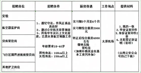 3、符合山西省民航机场公司入职体检标准。