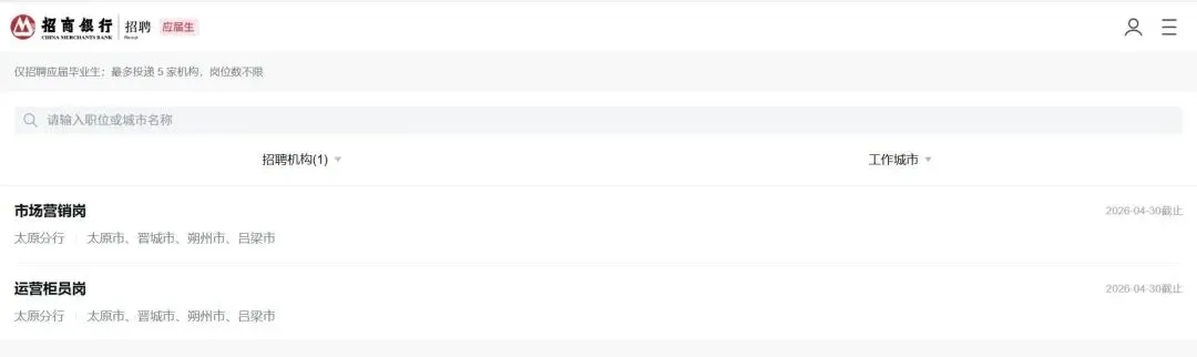 招商银行总行、分行及子公司2026春季校园招聘公告
