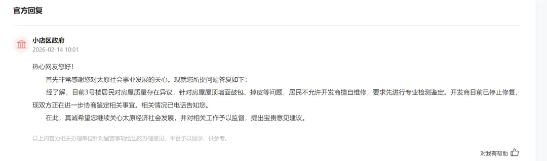 太原市小店区政府回应:
